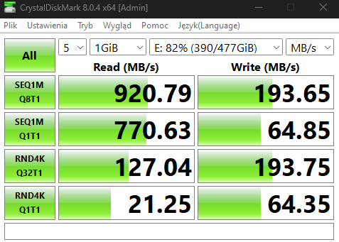 Jeśli z kolei idzie o praktyczne zastosowania, korzystałem z tego nośnika, aby przenosić zarówno dokumenty oraz zdjęcia, jak i potężniejsze wagowo assety do gier. W obu przypadkach prędkości były zadowalające, ale znacznie więcej powiedzą Wam poniższe wykresy, przedstawiające możliwości tego sprzętu na tle innych dysków.