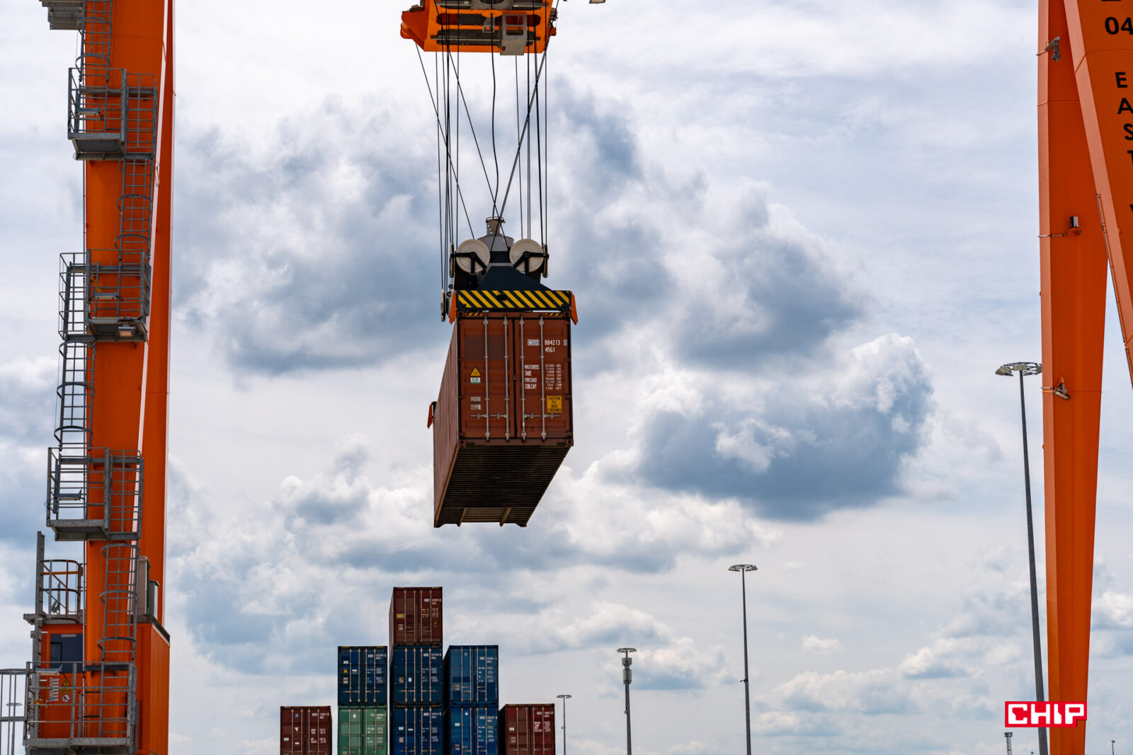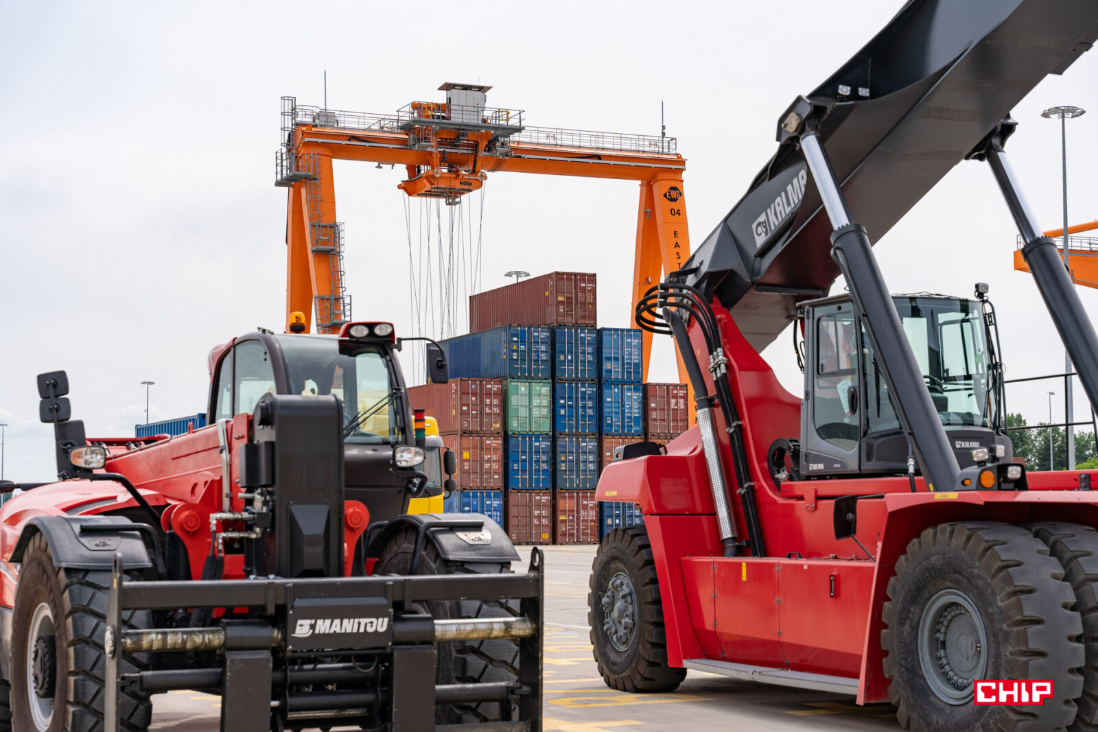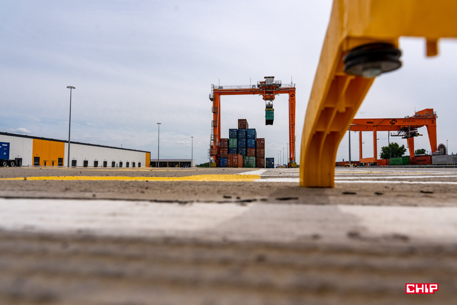 Przechodząc do twardych danych, na terminalu mamy pięć torów normalnych oraz pięć szerokotorowych, a cała powierzchnia obiektu to 85 hektarów. Pracują tu cztery dźwigi, największy o masie ponad 40 ton i co ciekawe, jeden z nich porusza się nie po torach, a na ogromnych gumowych kołach. Prawdopodobnie to jedyna taka konstrukcja na świecie. Odległość między najbardziej oddalonymi od siebie dźwigami to 2 km. Jednocześnie można tu rozładować cztery składy pociągów o długości 740 m każdy.