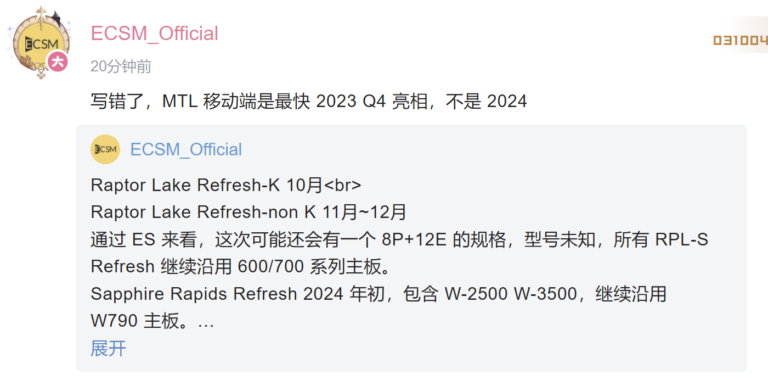 Wedle najnowszych informacji z chińskich forów, które dotyczą praktycznie wszystkich linii CPU firmy, Intel szykuje nam w najbliższych miesiącach istny roller-coaster wrażeń. Jeśli wierzyć tym informacjom, procesory nowej generacji do komputerów osobistych rzeczywiście mają być jedynie odświeżeniem aktualnej, czyli 13. generacji o nazwie Raptor Lake. W październiku mamy doczekać się premiery wariantów -K, a w listopadzie lub grudniu pozostałej części rodziny. Jednocześnie Intel ma przygotowywać się do wprowadzenia na rynek rzeczywiście nowych, a nie odświeżonych procesorów w ramach spodziewanej architektury Meteor Lake. Tyle tylko, że te CPU mają trafić do sprzedaży wyłącznie w laptopach, jako wersje -H, co zapewne nastąpi dopiero pod sam koniec roku, jako że firmy muszą mieć czas na zaadaptowanie nowości w swoich sprzętach.