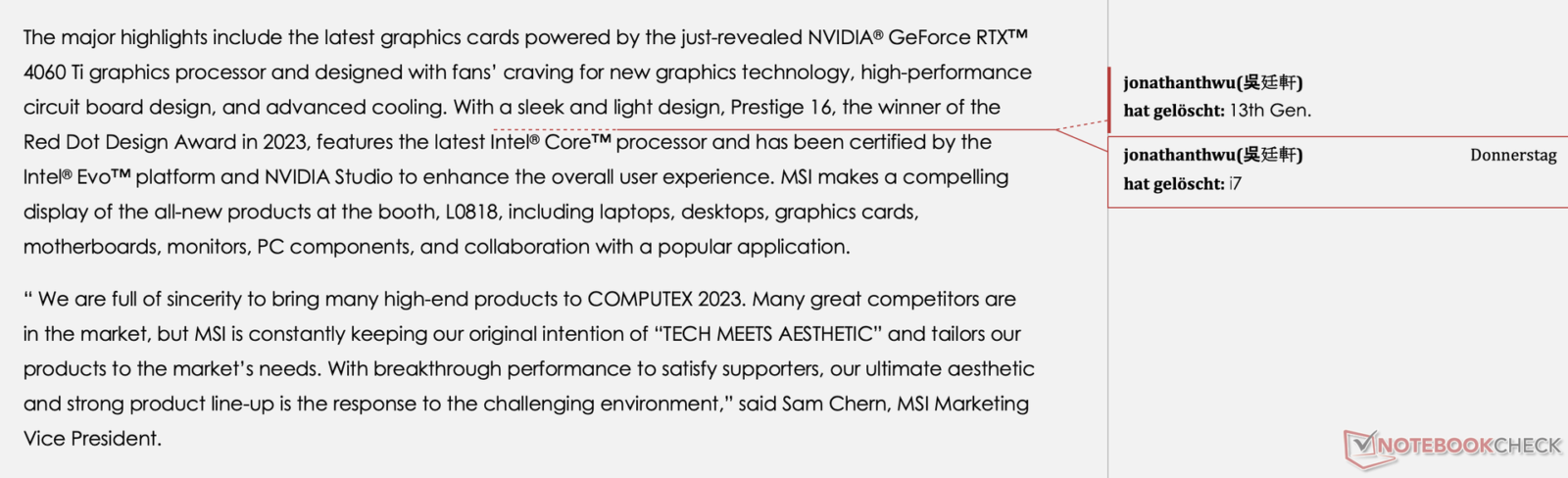 Zdjęcia tego sprzętu mieliśmy zobaczyć dopiero za kilka miesięcy. Tak przynajmniej chciałby z całą pewnością Intel, który najwyraźniej już udostępnia innym producentom swoje procesory nowej generacji, czyli Meteor Lake. Tyle tylko, że MSI nie postarało się, aby ukryć ten fakt. Dlatego tak oto możemy teraz spojrzeć na wyjątkowy, bo pierwszy laptop z procesorami Core 14. generacji na długo przed oficjalną premierą zarówno jego, jak i samych procesorów.