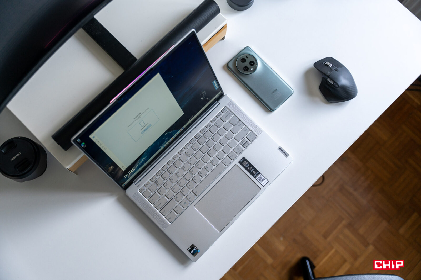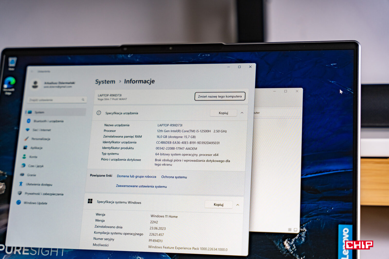Całą operację wykonywałem na laptopie Lenovo Yoga Slim 7 ProX. To bardzo kompaktowy komputer z 14,5-calowym, jasnym ekranem o rozdzielczości aż 3K i 120 Hz odświeżaniem obrazu, procesorem Intel Core i5-12500H, 16 GB pamięci RAM i dyskiem SSD o pojemności 512 GB. Laptop oczywiście posiada certyfikat Intel Evo i jest bardzo dobrym towarzyszem pracy w zasadzie wszędzie tam, gdzie tego potrzebujemy. Jego aluminiowa obudowa ma zaledwie 16 mm grubości i waży 1,45 kg. Trudno jest go nie zmieścić do dowolnego plecaka, a i zapewne w niejednej damskiej torebce znajdzie się dla niego wystarczająca ilośc wolnego miejsca.