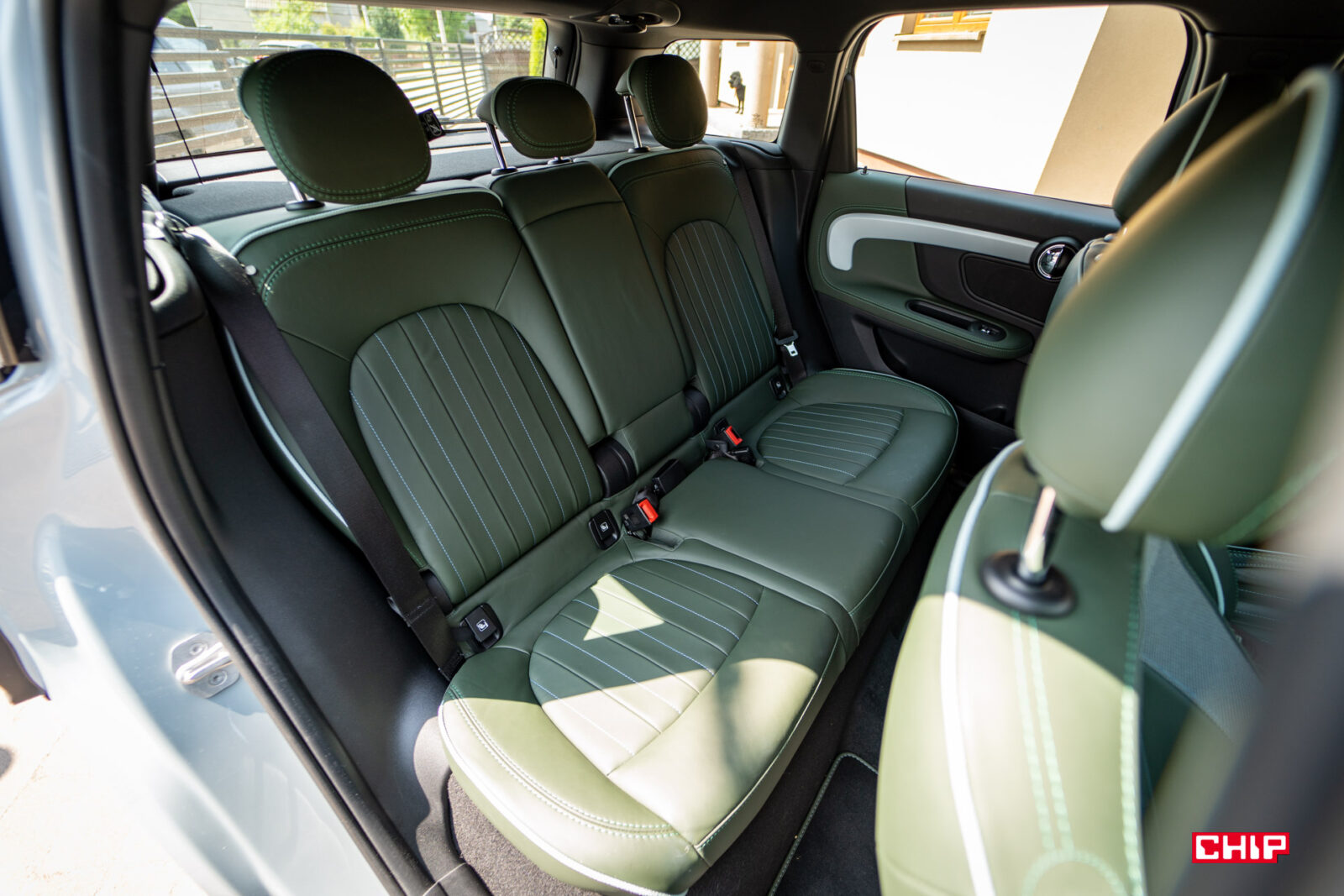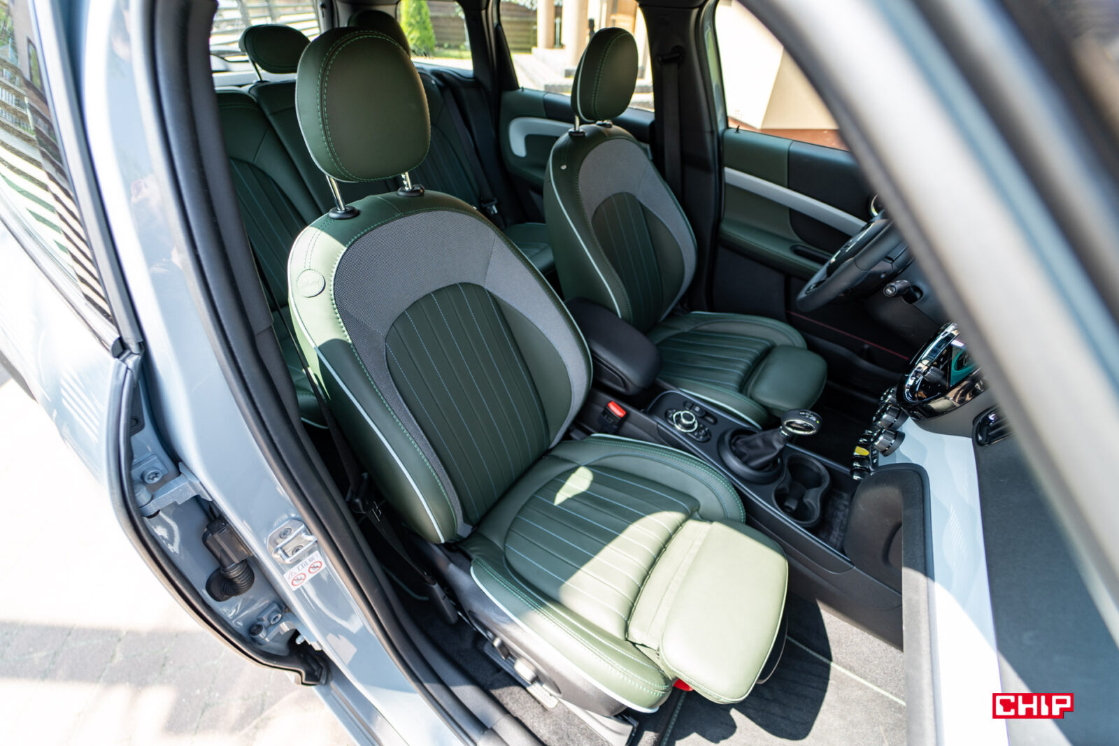 Wygląd wnętrza Mini Countymana zależy od tego, na jaki pakiet stylistyczny się zdecydujemy. To podnosi cenę auta o dodatkowe od 5600 zł do nieco ponad 20 tys. zł. Testowany wariant był uzbrojony w pakiet Untamed i choć można nie lubić stylistyki Mini, tak nie można mu odmówić wykonania wnętrza. Znajdziemy tu dużo małych elementów, takich jak przeszycia na fotelach, które zwyczajnie robią wrażenie. Nawet tak jak nie lubię zielonego, tak zielona skóra wygląda tu bardzo dobrze.