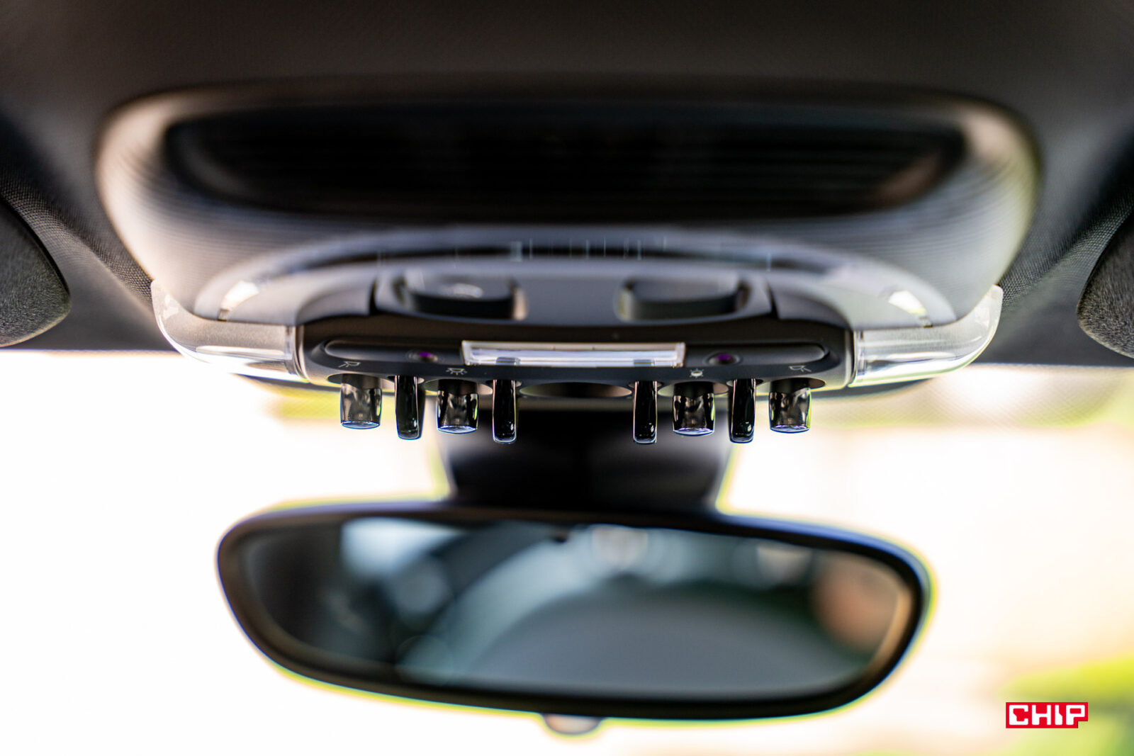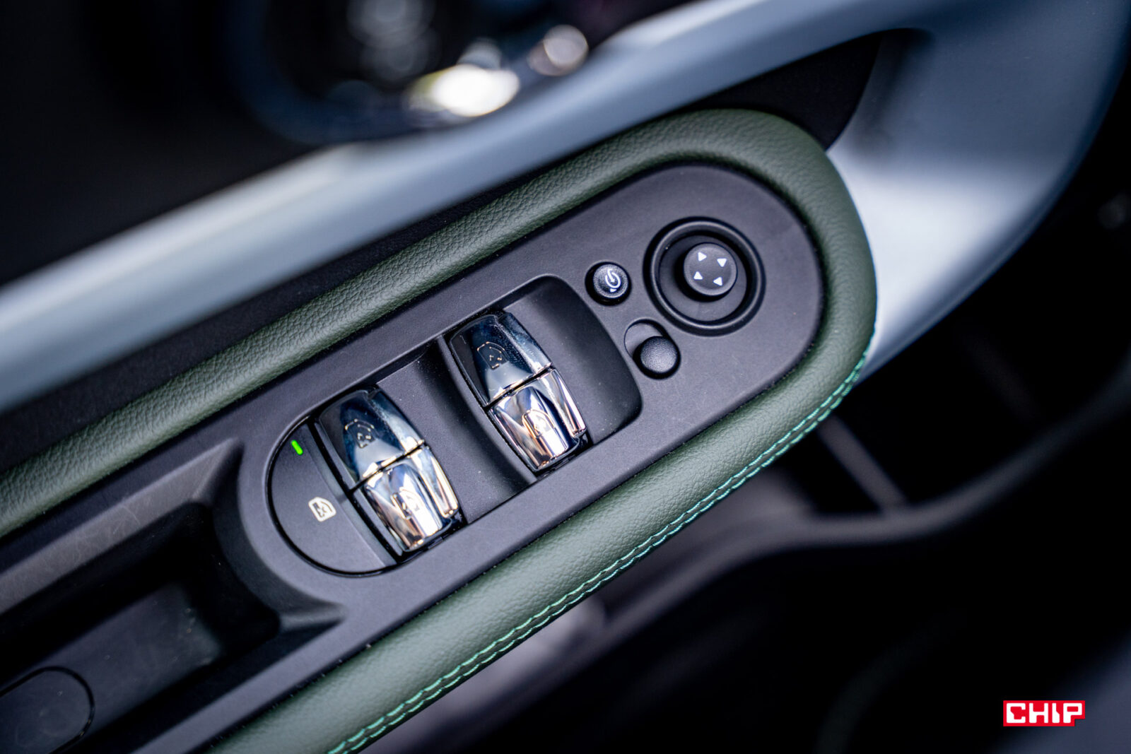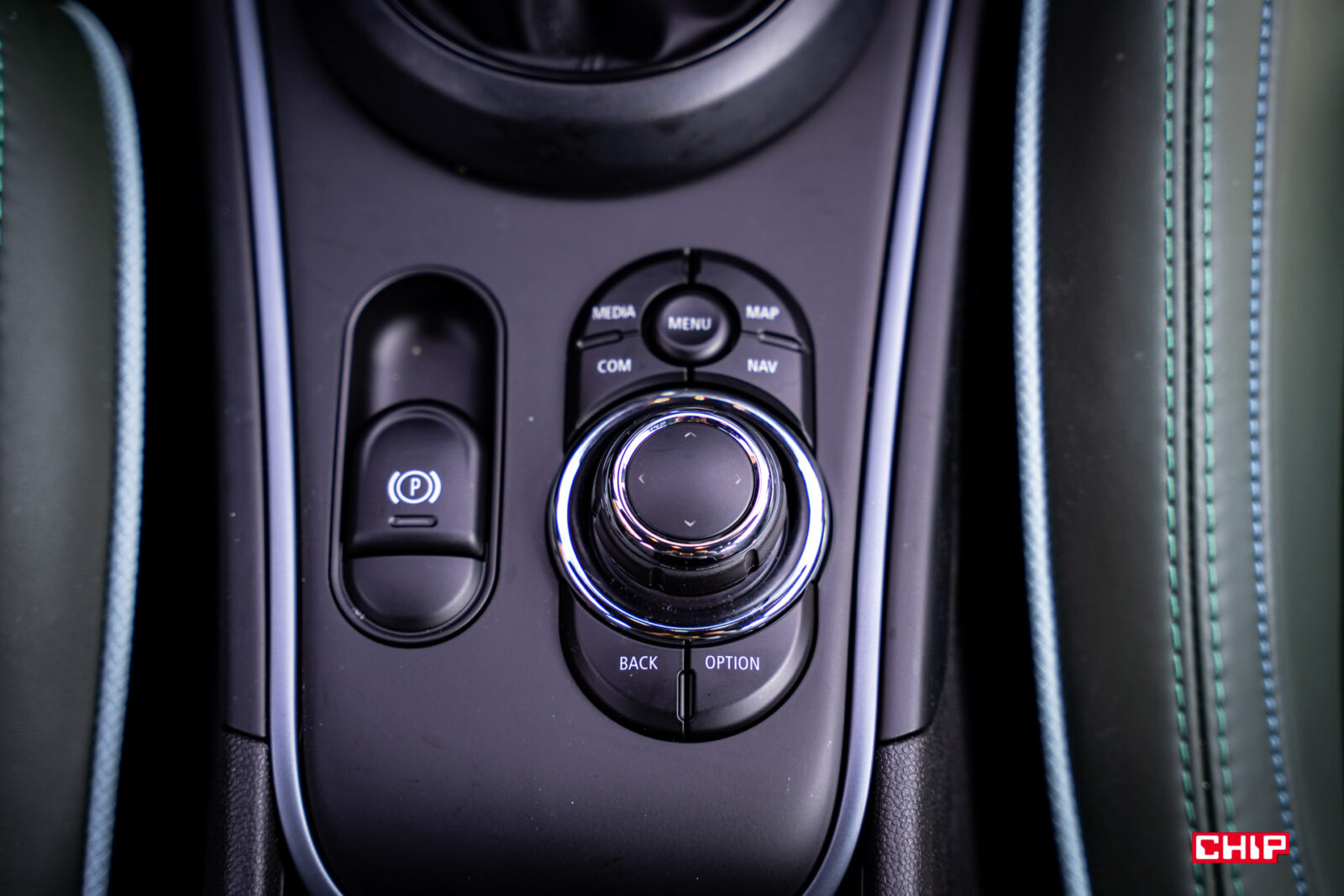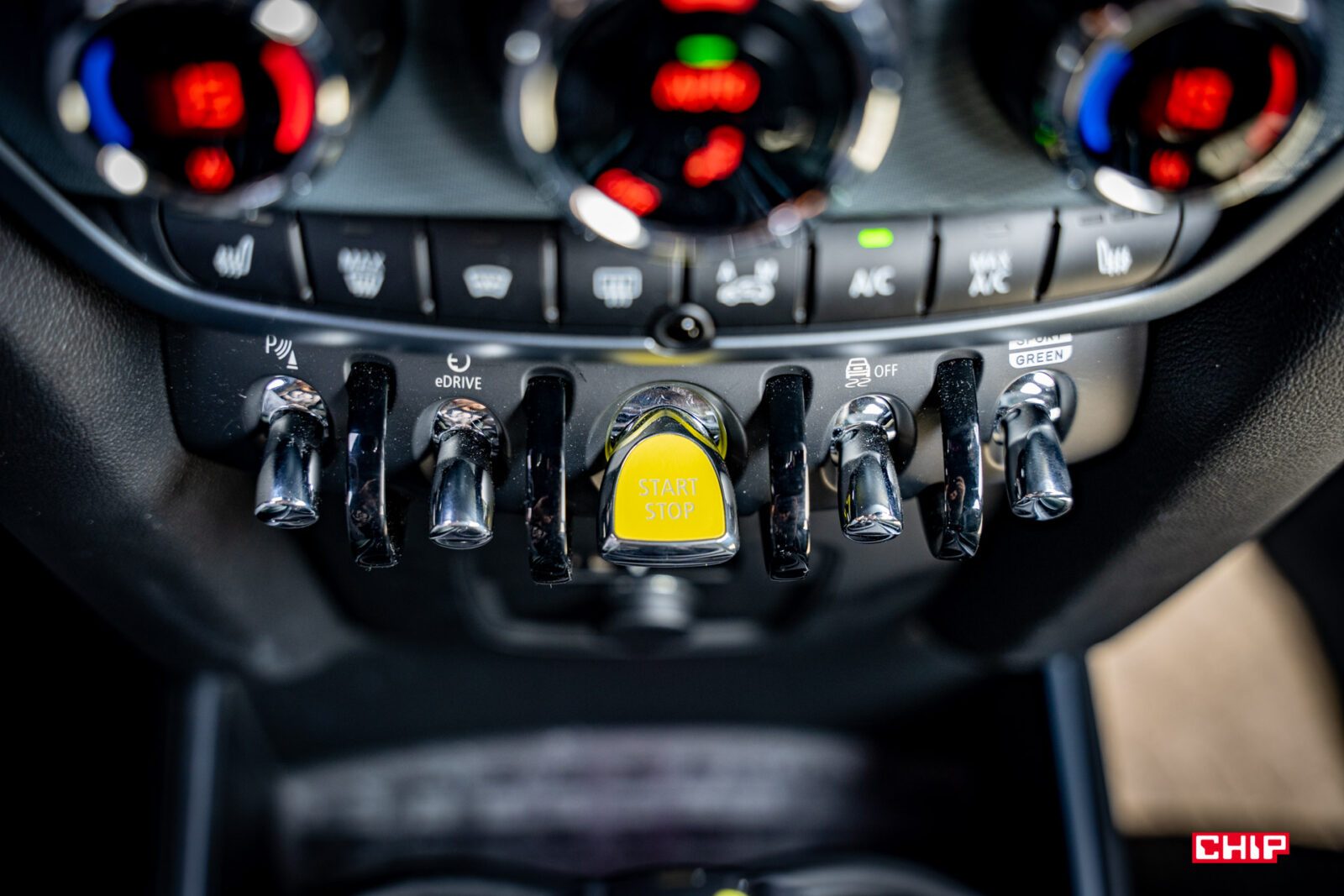 We wnętrzu Mini Countrymana dominują, typowe dla mini, okrągła akcenty. Tak, kółka są dosłownie wszędzie, ale ma to swój urok. Szczególnie w połączeniu z samolotowymi przełącznikami. Wnętrze jest też dyskretnie podświetlane, a kolor podświetlenia można zmieniać ręcznie lub zdać się na automat dopasowany do wybranego trybu jazdy.