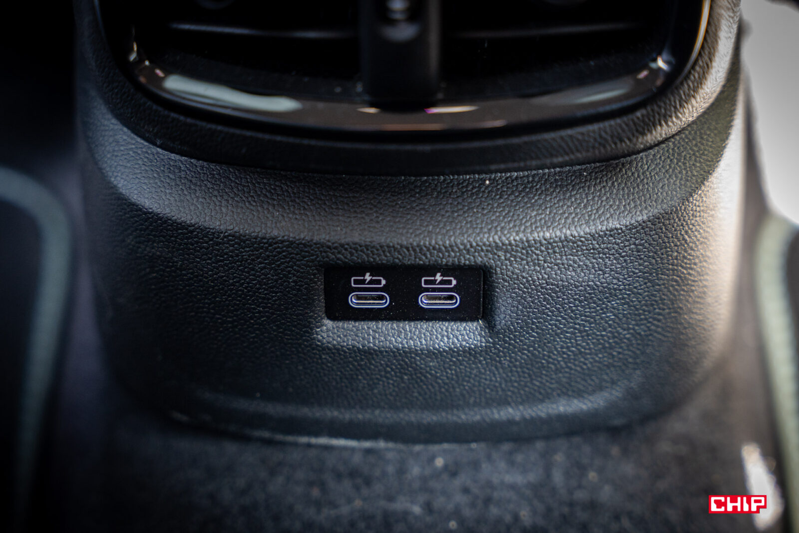 Bagażnik jest duży i ma pojemność 450 litrów. Składając dwa fotele z tyłu można w prosty sposób powiększyć ją aż do 1000 litrów. To zdecydowanie dobre auto na wyjazdy, które jest w stanie pomieścić spore ilości bagażu. Pod podłogą bagażnika znajdziemy miejsce na kable do ładowania oraz opcjonalnie możemy tam umieścić… rozkładaną ławkę turystyczną. W zasadzie taką poduszkę układaną na płaskim progu bagażnika. Dziwne? Może trochę, ale przecież jeśli tego nie potrzebujesz, nikt nie każe do niej dopłacać.