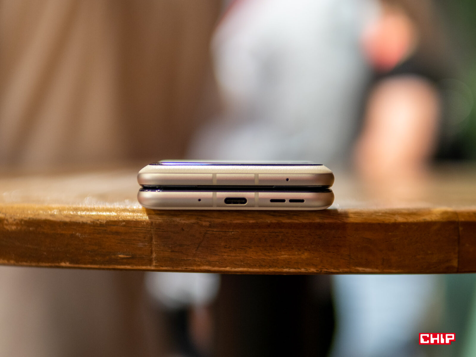 Faktycznie oba nowe modele razr z daleka mocno przypominają to, co już widzieliśmy w tym roku, ale im dłużej na nie patrzyłem, tym bardzo wydawały mi się podobne, ale jednak inne. Konstrukcja jest bardzo sztywna i między innymi dlatego można zatrzymać otwartą klapkę pod niemal dowolnym kątem. Całość sprawia wrażenie konstrukcji cieńszej i szerszej. Trochę jakby ktoś te smartfony sprasował, ale zdecydowanie działa to na ich korzyść. Ogółem konstrukcja jest zwarta, nie kołysze się na boki i brakuje jej tylko wodoodporności. Mamy tu tylko odporność na zachlapanie, zgodnie z normą IP52.