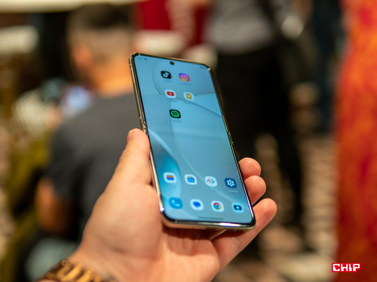 Ekran główny to z kolei duża przekątna 6,9 cala, rozdzielczość 2640 x 1080 pikseli, 165 Hz odświeżanie obrazu i jasność do 1400 nitów. Ekran jest stosunkowo wąski i podłużny, przez co obsługiwanie go jedną ręką nie będzie prostą czynnością. Motorola chwali się, że miejsce zgięcia ekranu nie jest widoczne. Oczywiście jest, ale przyznaję, że uchwycenie go na zdjęciach zajęło mi chwilę. Jeśli chodzi o smartfony z klapką, w Motoroli widać ten element w zdecydowanie najmniejszym stopniu i nie jest on mocno wyczuwalny podczas użytkowania.