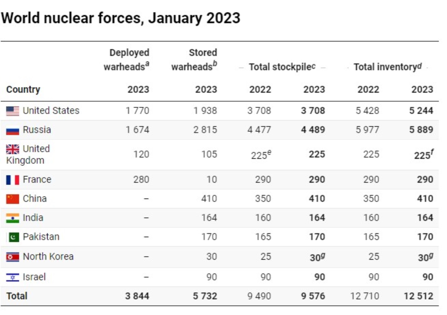 Kluczowym wnioskiem z tegorocznego wydania SIPRI 2023 jest to, że dziewięć państw dzierżących broń jądrową nadal intensywnie inwestuje w swoje arsenały jądrowe, mimo że ten rodzaj broni doprowadza do pogorszenia stosunków geopolitycznych. W tym gronie wyróżniają się (niestety) Rosja, Chiny, Indie i Korea Północna, bo jako jedne z nielicznych nie tylko ulepszają, ale też zwiększają wielkość swoich zapasów broni jądrowej. Warto mieć też na uwadzę, że Izrael i Korea Północna nie ogłosiły publicznie swojego statusu nuklearnego ani wielkości swoich arsenałów, więc szacunki dotyczące tych krajów opierają się na niepewnych źródłach i założeniach.
