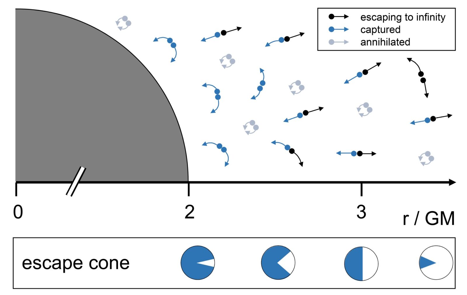 O perspektywach wynikających z realizacji takiego scenariusza debatowali naukowcy z Uniwersytetu im. Radbouda w Nijmegen. Jednym z aspektów poruszonych przez autorów była obecność horyzontu zdarzeń oraz jego wpływ na ewentualne postępowanie anihilacji czarnych dziur (a w zasadzie całej materii). W toku symulacji badacze próbowali zrozumieć, jakie procesy zachodzą, gdy cząstki powstają w otoczeniu czarnych dziur. Jak się okazało, do tworzenia cząstek może dochodzić nawet daleko poza horyzontem zdarzeń.