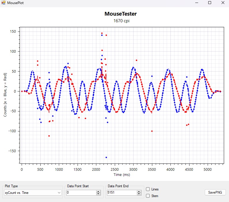 Przechodząc już do najważniejszego, czyli samej precyzji, na papierze Pulsar X2 Wireless po prostu musi wyjść z tego pojedynku z przysłowiową tarczą. Nie tylko dlatego, że dzierży flagowy sensor optyczny PixArt PAW3395, ale też wspomnianą funkcję Motion-Sync, która kosztem input-laga zwiększonego o 1 ms dba o to, aby zgrać ze sobą sygnał wysyłany przez mysz z tym, którego odbiera komputer. Czy to rzeczywiście działa? Porównanie obejrzyjcie poniżej i co tu dużo mówić – to robi wrażenie.