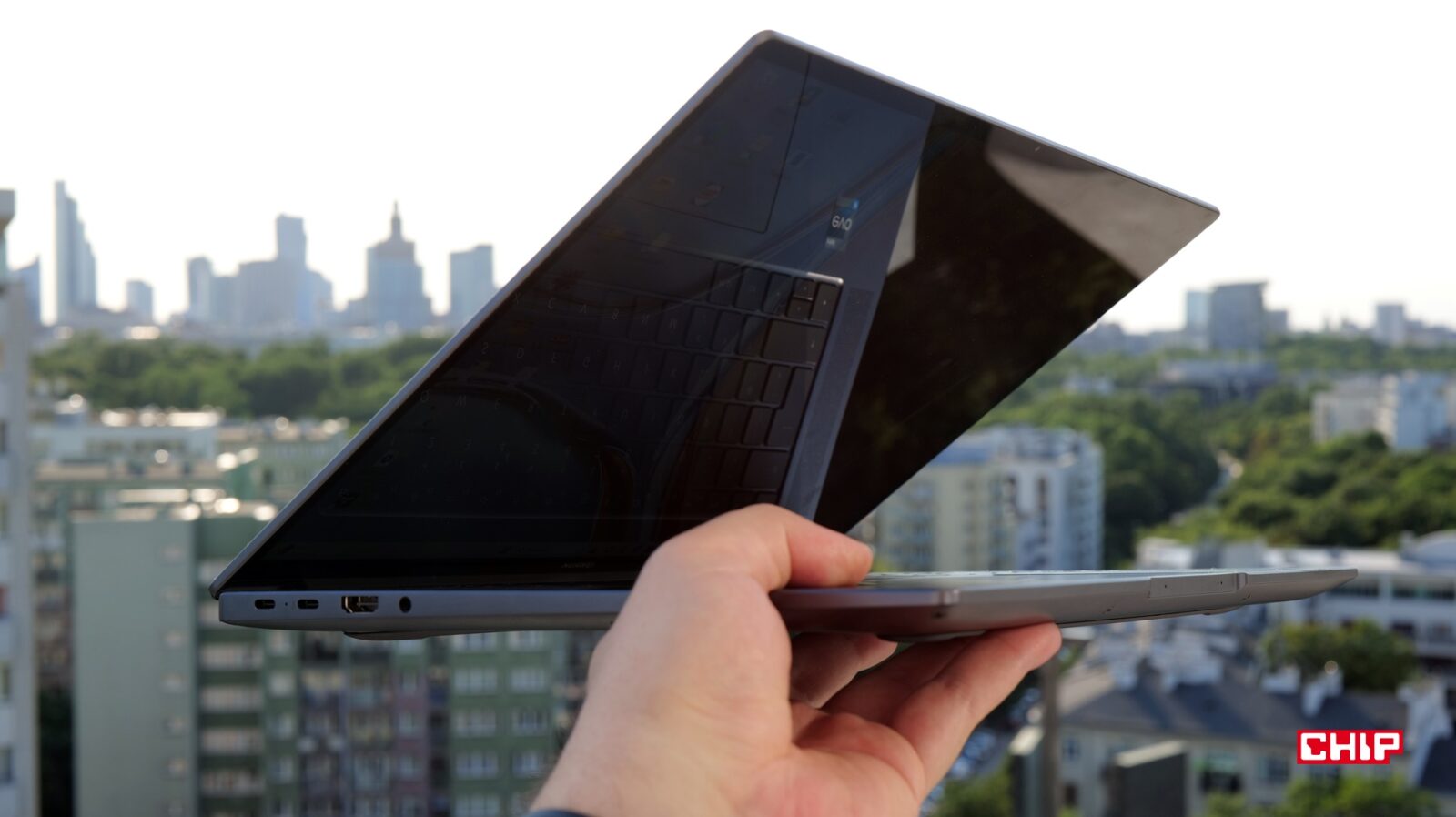 Czuć, że w MateBooku 16s Huawei nie oszczędzał na materiałach. Zastosowane aluminium nie tylko wygląda elegancko, ale i jest przyjemne w dotyku. Laptop nie należy do najsmuklejszych, ale daleko mu także do kobył i dzięki szlifom oraz zaokrągleniom obudowy prezentuje się smukle. Waży przy tym prawie dwa kilogramy. Zdecydowanie jestem fanem jak najlżejszych konstrukcji (nawet kosztem materiałów), więc oczekiwałbym od Huawei jakiejś kuracji odchudzającej dla tego modelu. Jednocześnie nie jest to jeszcze sprzęt przytłaczający swoim ciężarem.