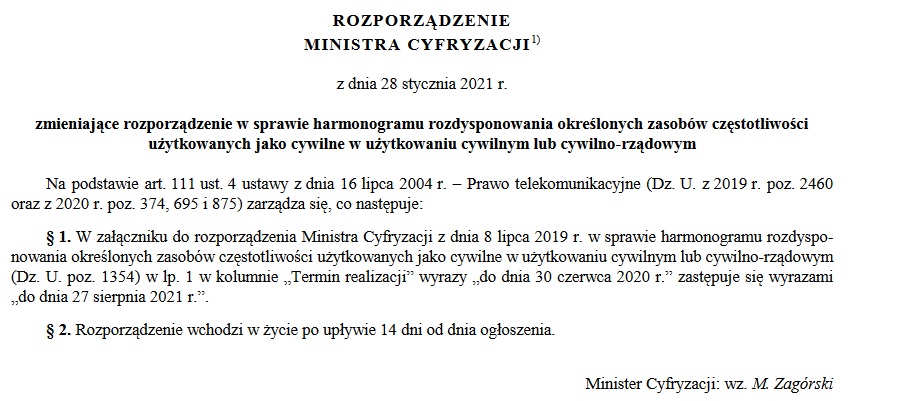 Także oficjalnie aukcja się już skończyła, częstotliwości rozdano, a rozporządzenia do dzisiaj nikt nie zmienił. Ale posłużmy się tutaj dzisiejszą wypowiedzią ministra cyfryzacji.