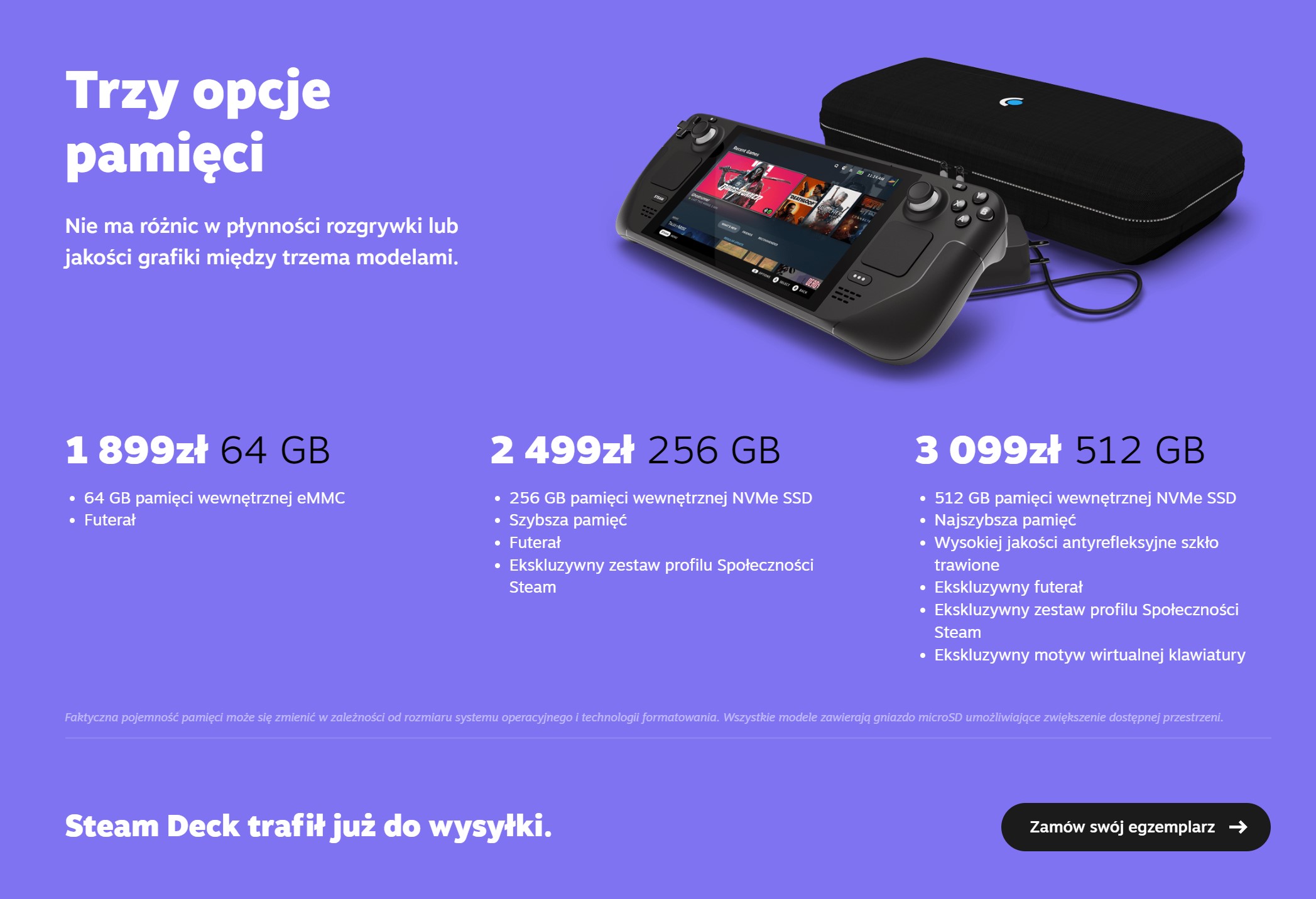 Dla jasności, Steam Deck w najwyższej wersji kupiony bezpośrednio od Valve kosztuje 3099 zł, a przecież możemy też wybrać jedną z tańszych wersji. Przesyłka gratis.