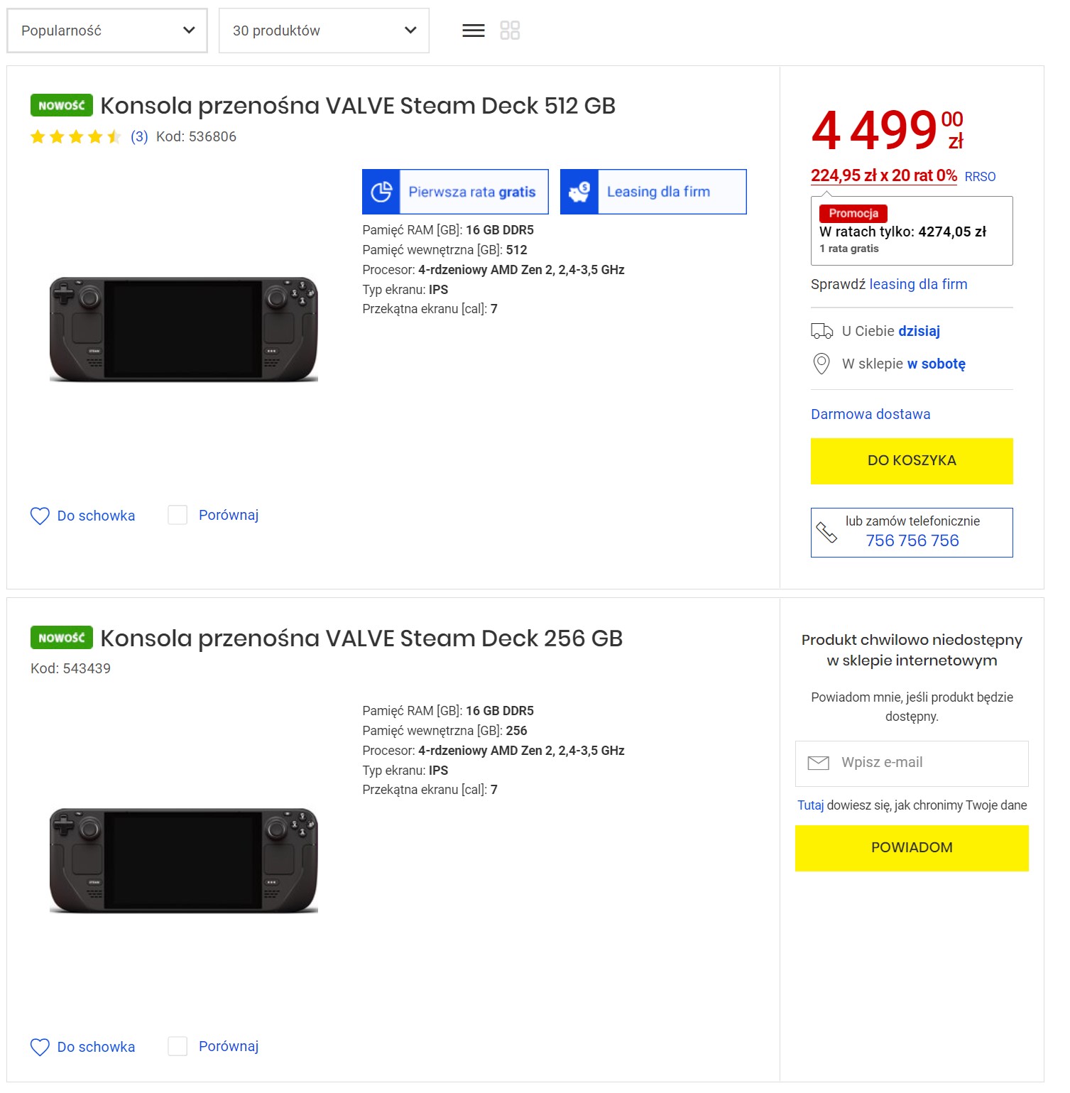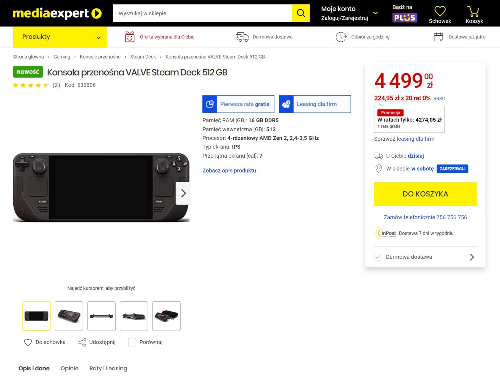 To oczywiście rodzi problem dla konsumenta, bo nie sposób po prostu pójść do sklepu i pomacać konsolę. Trzeba ją niestety kupić w ciemno. Problematyczne może też być późniejsze serwisowanie i opieka posprzedażowa, która wiąże się każdorazowo z wysyłką Steam Decka do zagranicznego punktu. Teraz jednak jeden z polskich elektromarketów wprowadził Steam Decka do sprzedaży i… coś czuję, że sprzeda równe zero egzemplarzy.