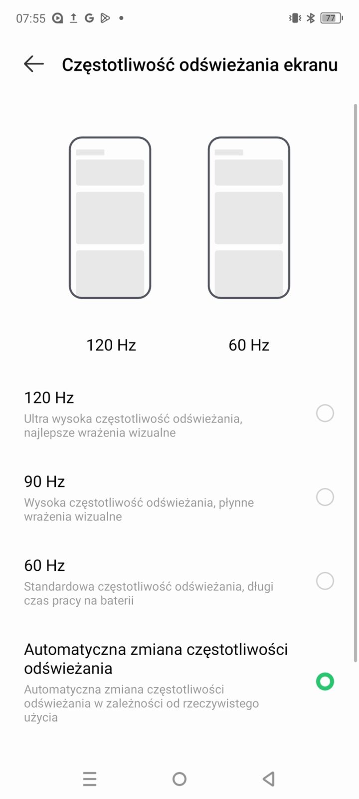 W tym modelu producent zastosował 6,67 calowy wyświetlacz AMOLED o rozdzielczości 2400 x 1080 (20:9), odświeżaniu do 120 Hz oraz maksymalnej jasności równej 900 nitów. Czy mamy więc do czynienia z bardzo dobrym ekranem? Jak najbardziej. Jak przystało na panel AMOLED dostajemy tu idealną czerń, nasycone barwy i świetne kąty widzenia. Po włączeniu 120 Hz odświeżania na płynność wyświetlanych treści również nie powinniśmy narzekać. Maksymalna jasność wystarczy do komfortowej pracy nawet w letni, słoneczny dzień (pod warunkiem, że będziemy unikać bezpośrednio ostrego słońca – wtedy należy zastosować tryb wysokiej jasności).