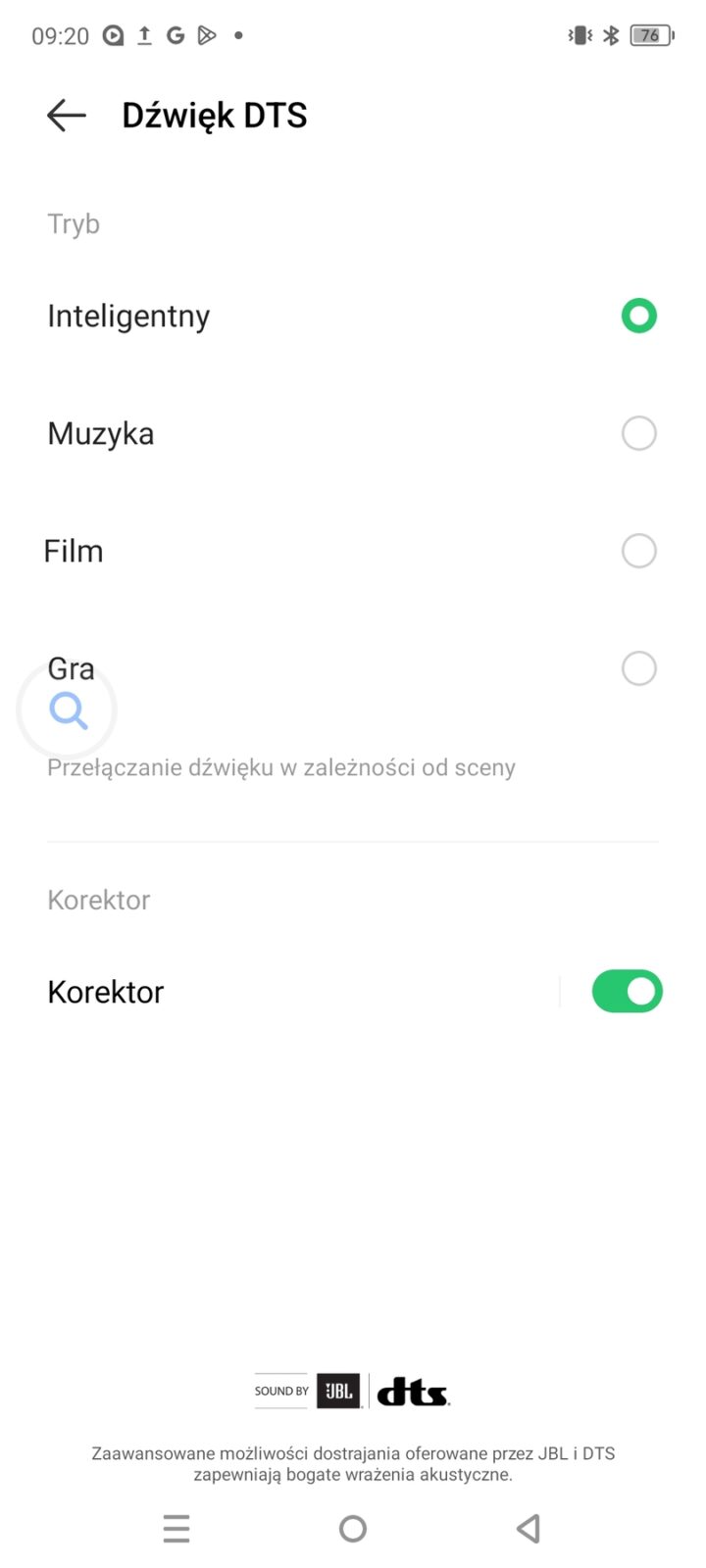 Głośniki stereo są co prawda sygnowane logiem znanej firmy JBL, ale… no nie grają one zbyt dobrze. Dźwięk jest płaski, zwłaszcza na wyższych poziomach głośności. Wtedy też pojawiają się słyszalne zniekształcenia, na które ani ustawienia DTS, ani manualny korektor częstotliwości nie są w stanie za dużo poradzić.