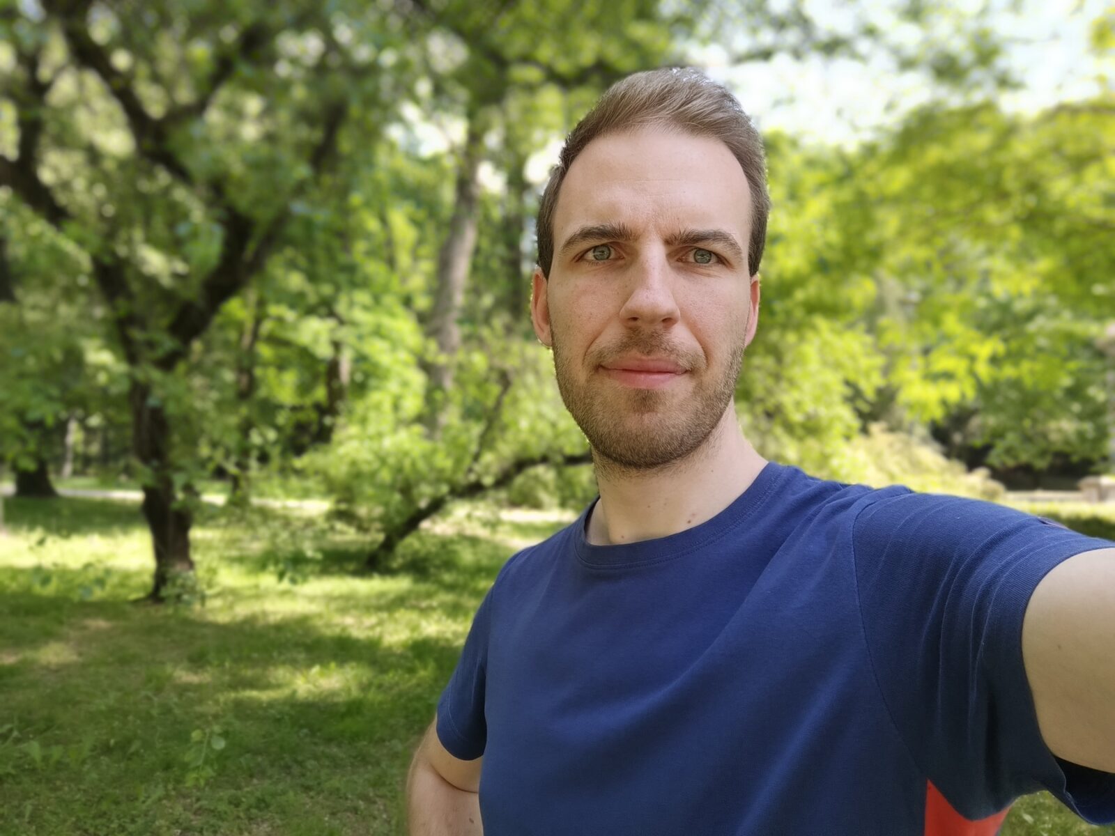 Przedni aparat do selfie to 32 Mpix matryca z optyką o jasności f/2.45 i podwójną podwójna diodą doświetlająca. Tego typu dioda nie zdarza się zbyt często w smartfonach, także brawa dla producenta. Jakość „selfiaczków” jest przyzwoita, ale jednak na niektórych ujęciach przydało by się trochę więcej szczegółów. Poza tym w trybie portretowym niejednokrotnie widać artefakty naokoło fotografowanej osoby. Po prostu oddzielanie osoby od fotografowanego tła nie działa idealnie – mam nadzieje, że zostanie to poprawione aktualizacjami.