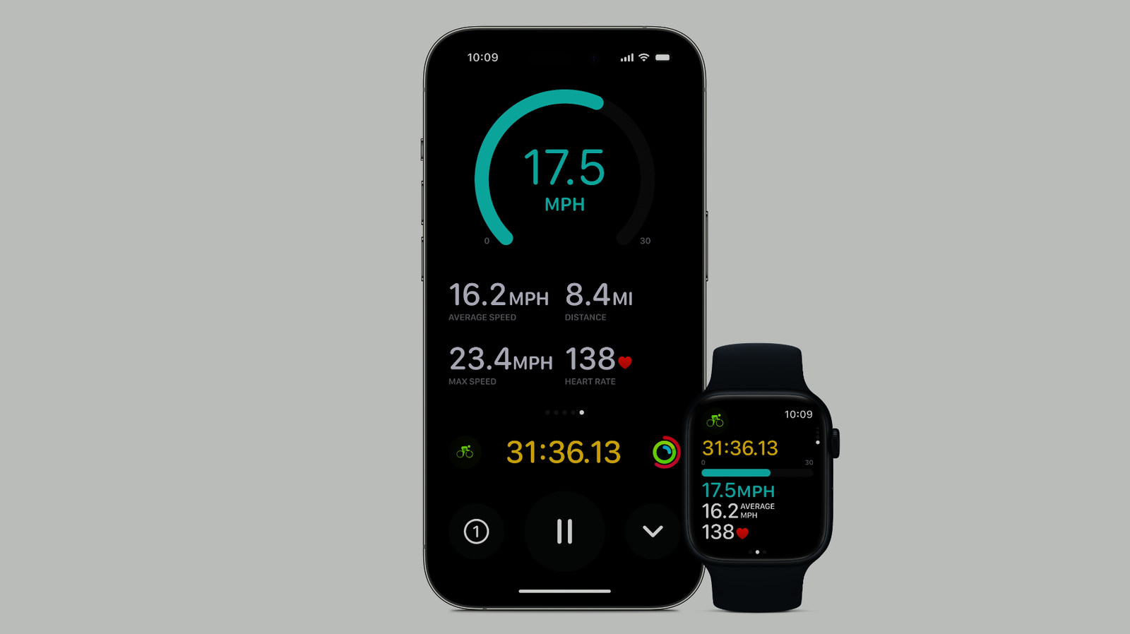 Kolejnymi nowościami watchOS 10 są rozszerzone treningi – miłośnicy jazdy na rowerze mają możliwość nawiązywania łączności za pośrednictwem Bluetooth z montowanymi wprost na pojeździe czujnikami kadencji, miernikami mocy, prędkości etc, włączania informacji z nich do rejestrowanego treningu i pokazywania informacji wprost na zegarku. Swego rodzaju przełomem jest połączenie na żywo podczas treningu między zegarkiem, a iPhone’em – informacje o aktualnej aktywności wyświetlane są jako wydarzenie na żywo w formie widżetu, a po kliknięciu wszystkie informacje można będzie obejrzeć wygodnie na pełnym ekranie – po zamontowaniu smartfonu na uchwycie rowerowym zamieni się on w pełnoprawny komputer rowerowy. Rozszerzone algorytmy są w stanie oszacować najwyższą moc, jaką kolarz jest w stanie utrzymać przez godzinę (funkcjonalna moc progowa, FTP).