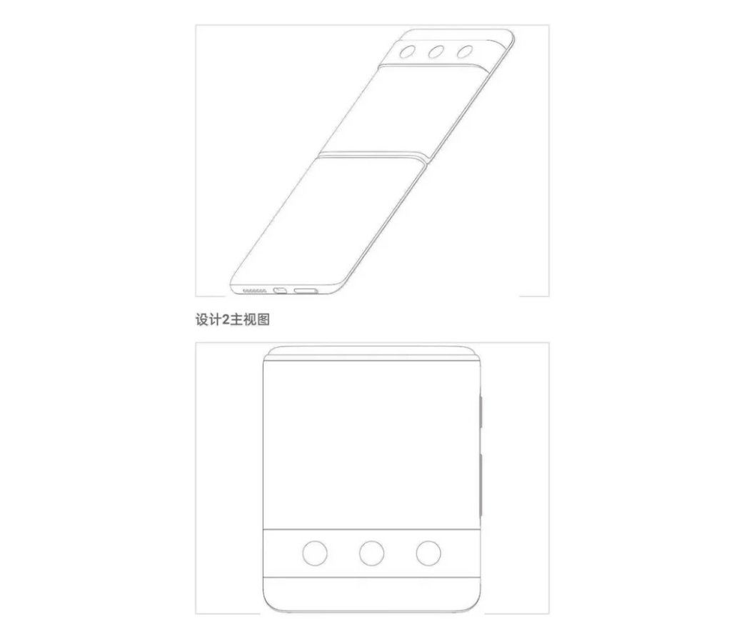 W połowie ubiegłego roku w CNIPA po raz kolejny złożono patent na model typu Flip, ale o zupełnie innym wyglądzie. Szkice, które widzicie poniżej, pokazują model z poziomą wyspą aparatów, nieco przypominającą tę w nowych Pixelach od Google’a, oraz z miejscem na naprawdę spory wyświetlacz zewnętrzny. Muszę jednak zaznaczyć, że na szkicach nie ma wyraźnie zaznaczonego dodatkowego ekranu, spekulowano więc, że Xiaomi mogło z niego całkowicie zrezygnować, a opatentowany model byłby prawdziwie budżetowym składakiem.