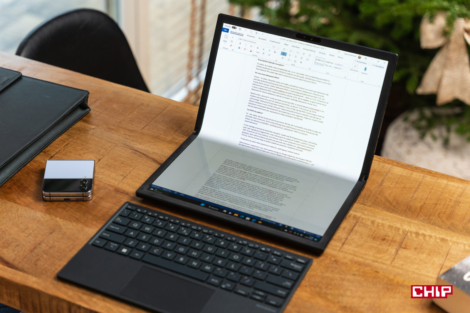 Pytanie tylko… po co? Przykład Zenbooka Fold od Asusa pokazał nam, że przed producentami jeszcze ogromna droga do pokonania i obecnie składany laptop to zwyczajna porażka. Owszem, po rozłożeniu dostajemy świetny, ogromny tablet, ale w zasadzie na tym te zalety się kończą. Grubaśna, mało poręczna konstrukcja to tylko wierzchołek góry lodowej problemów, jakie są z takim sprzętem. Jeśli jesteście ciekawi, na co można jeszcze ponarzekać korzystając ze składanego laptopa, odsyłam was do recenzji wspomnianego modelu Asusa. Przytoczę tylko to, co napisał tam Łukasz: