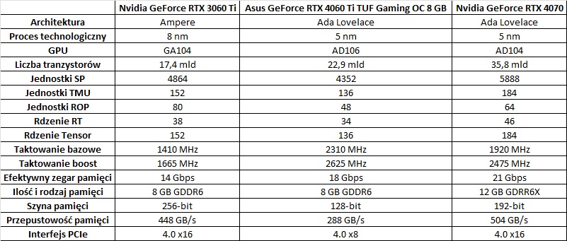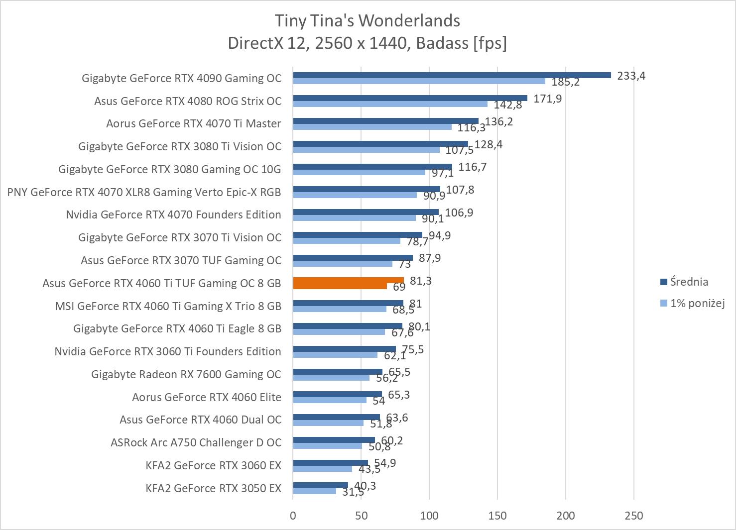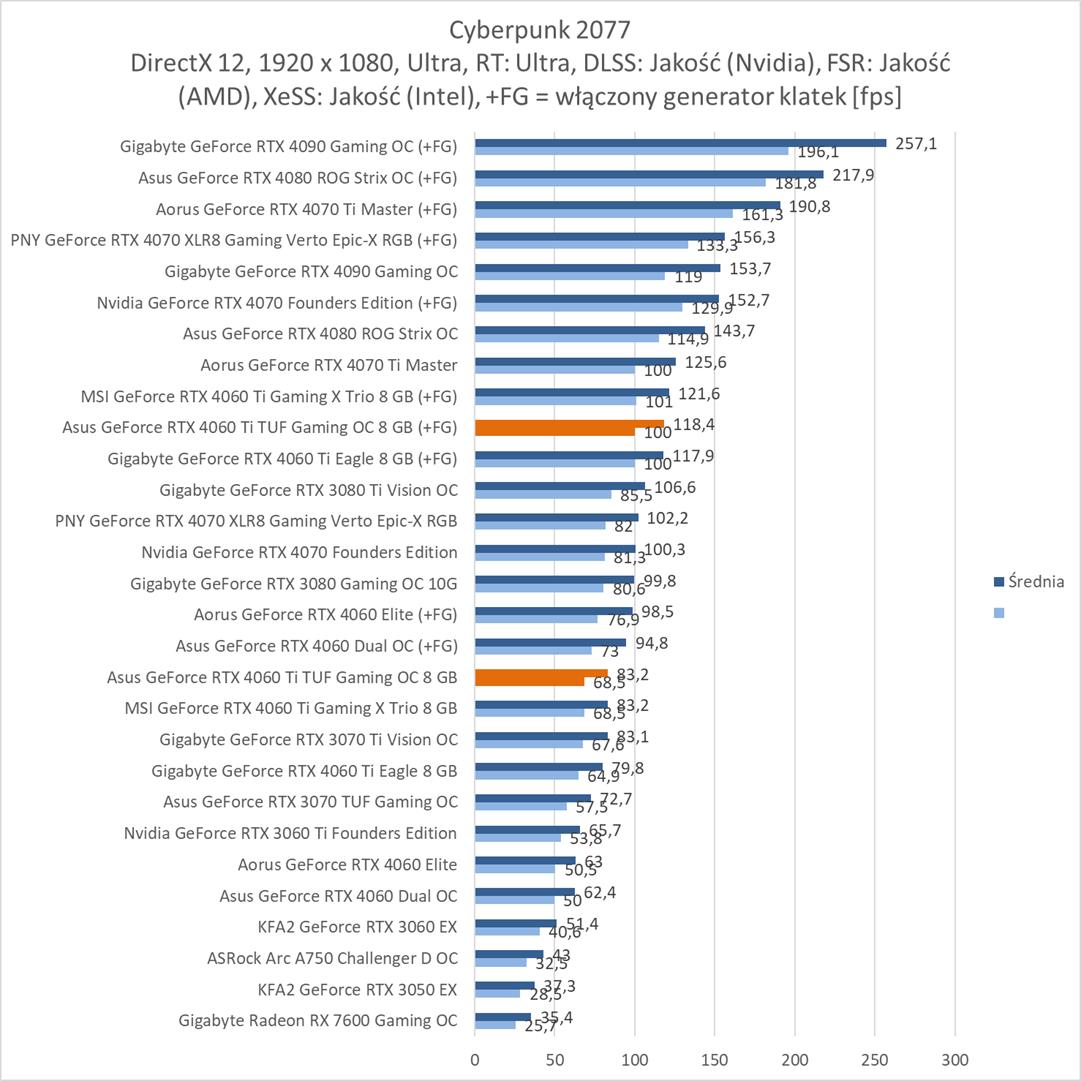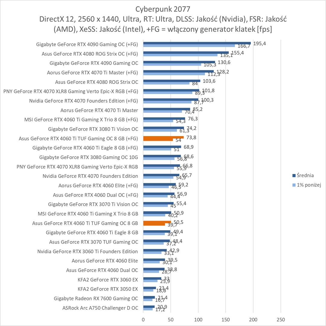 Test Asus GeForce RTX 4060 Ti TUF Gaming OC 8 GB – podsumowanie