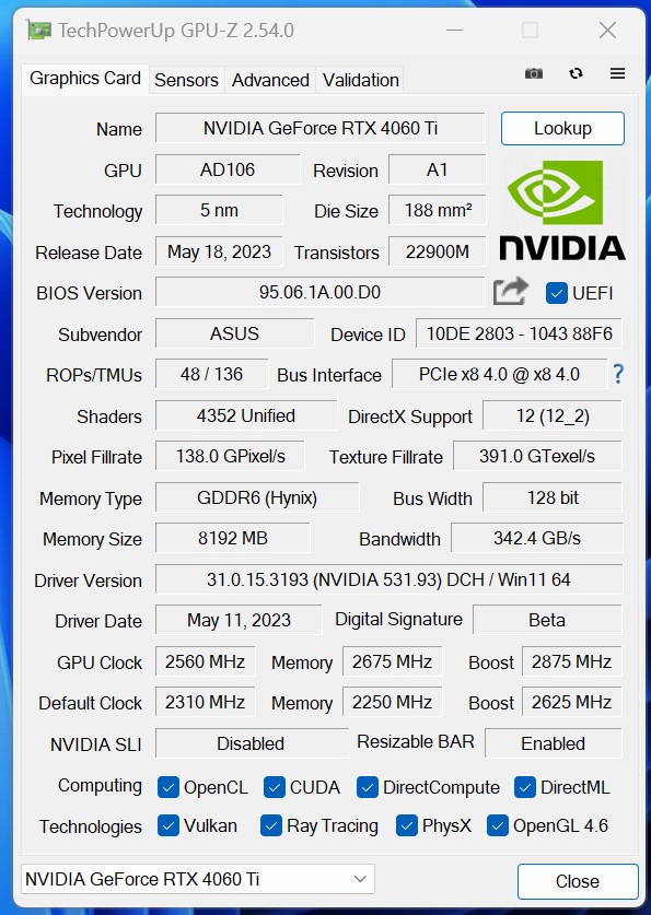- RTX 4060 Ti: Nvidia Game Ready 531.93