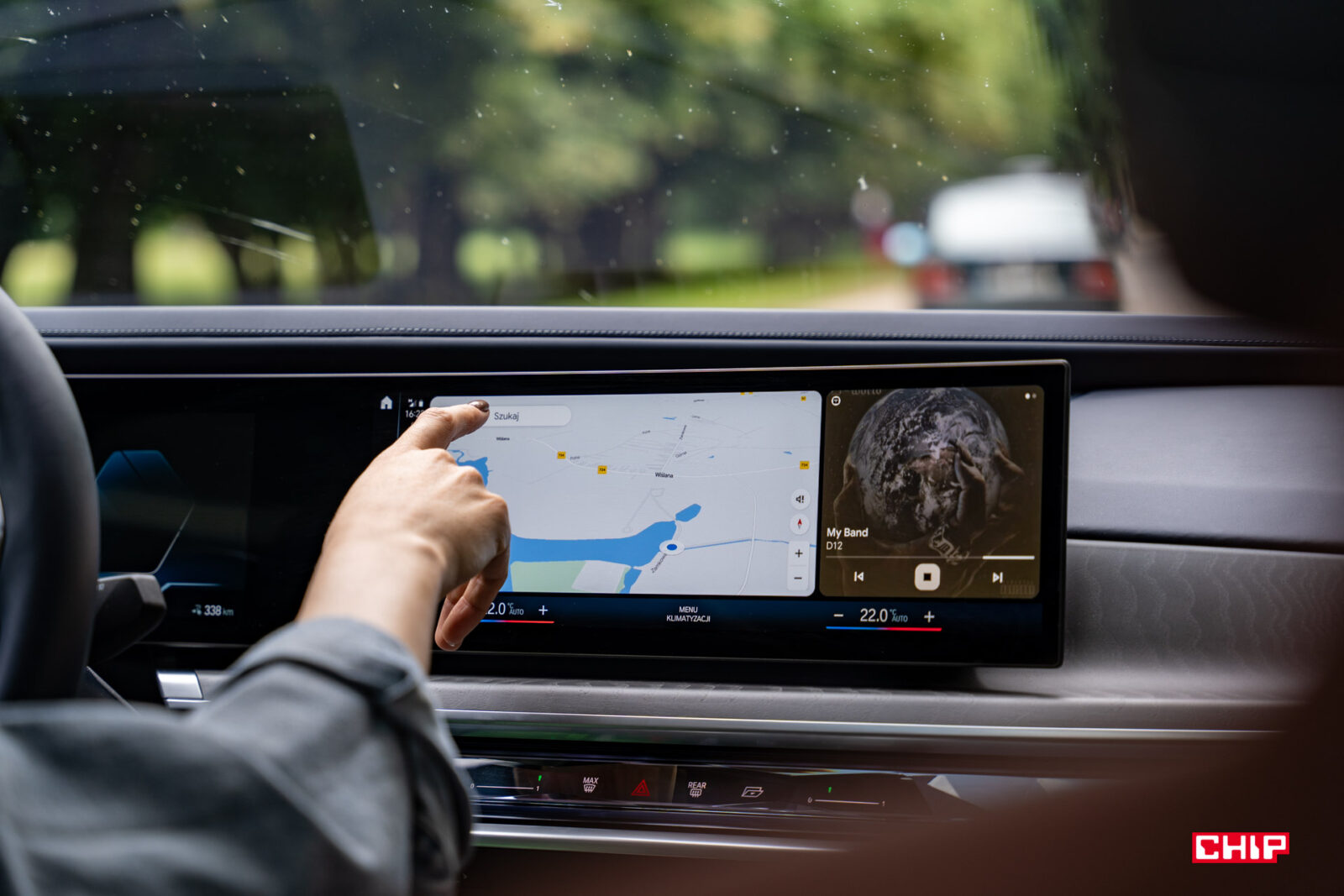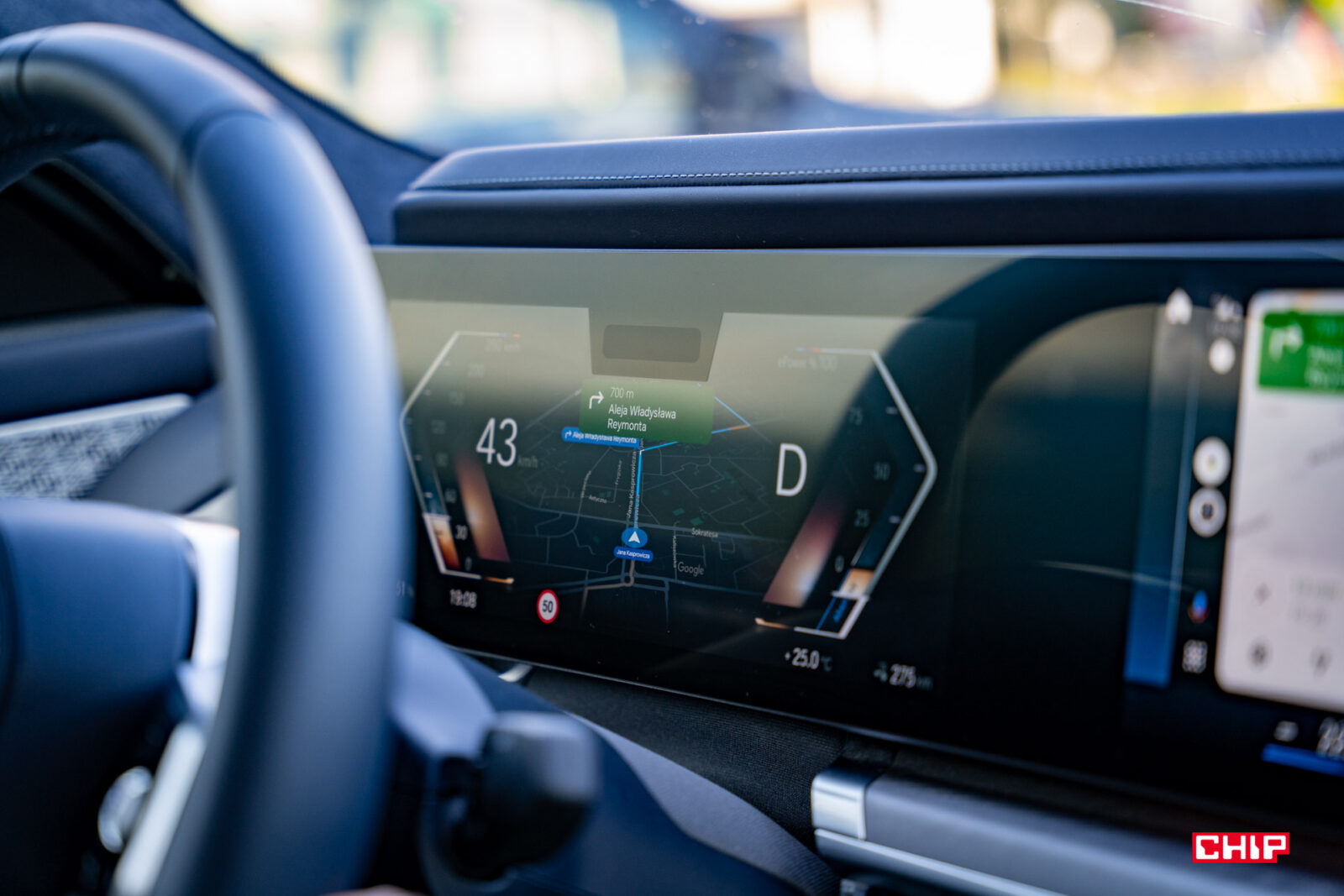 Zacznijmy od zużycia w mieście, bo tutaj rozstrzał jest największy. Kiedy przebijałam się przez zakorkowaną Warszawę, Siódemka zużywała 24,2 kWh/100 km. Dużo, ale ta trasa obejmowała stolicę w swoim najgorszym wydaniu – tysiące samochodów, stanie na zielonych światłach, bo za nimi nie było miejsca, reagowanie na chamskie zagrywki innych kierowców i wszechobecne poczucie beznadziei. Kiedy zmierzyłam zużycie na tej samej trasie, ale wieczorem, kiedy ruch był minimalny, i7 zużył 18,3 kWh/100 km. Przyznaję – miałam szczęście, bo światła układały się na moją korzyść, włączyłam inteligentną rekuperację i nie spotkałam wielu współuczestników ruchu. Mimo wszystko – po sprawdzeniu wyniku wyskoczył mi w głowie błąd systemu. Zakładałam, że uda mi się zejść do 20 kWh/100 km, ewentualnie z małym hakiem, ale nie do 18,3 kWh/100 km!