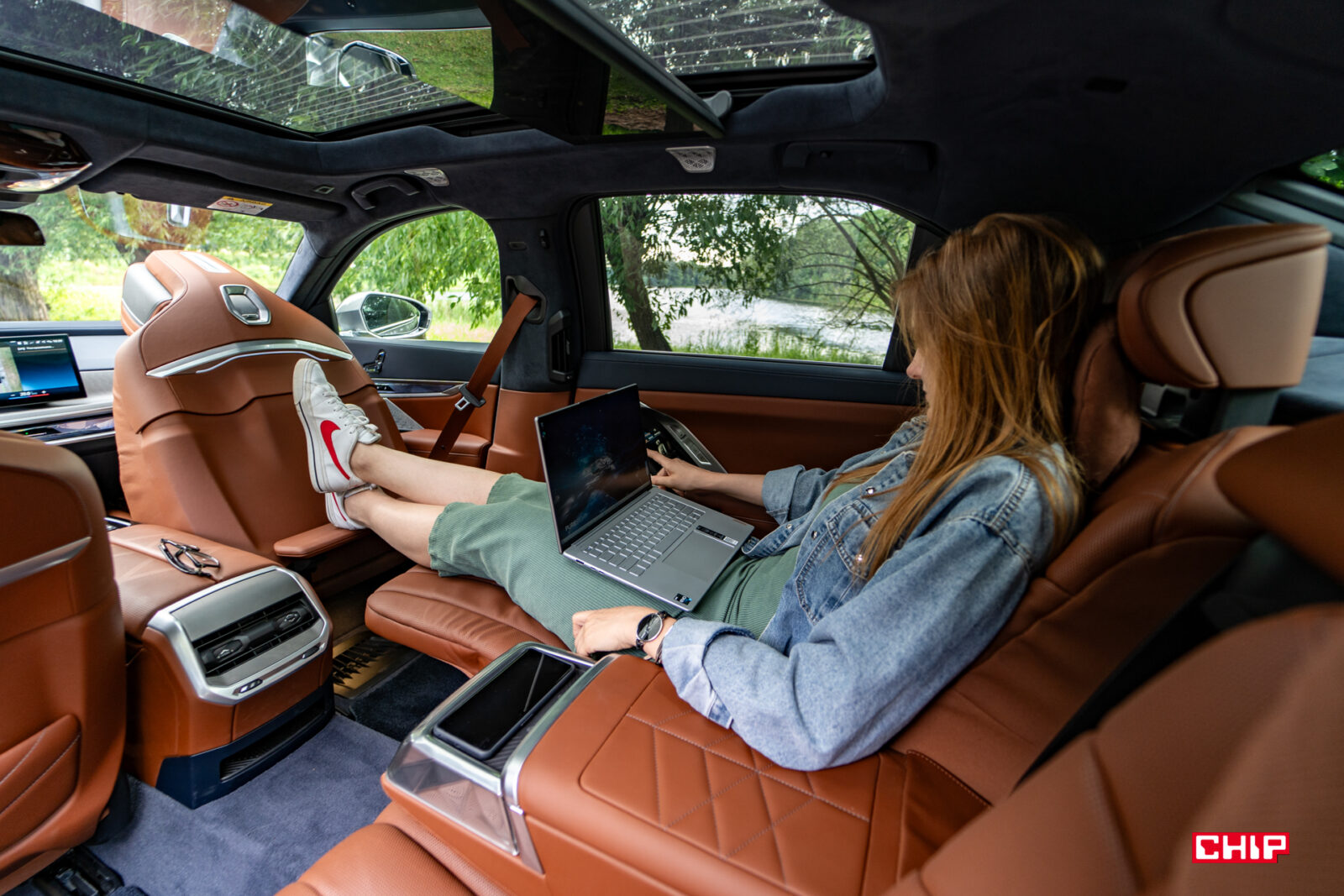 BMW 740d jest autem wzorowo wyciszonym, ale mimo wszystko coś tam burczy. W BMW i7, jeśli chcemy się kompletnie wyciszyć to… zwyczajnie to robimy. Po wyłączeniu obłędnie grającego systemu audio możemy podróżować w kompletnej ciszy. Łącząc to z bardzo dobrym zawieszeniem można odnieść wrażenie, że nie jedziemy autem, a w jakiś magiczny sposób unosimy się kilka centymetrów nad asfaltem i radośnie nad nim suniemy. To trudne do opisania, ale wrażenia są nie do podrobienia.