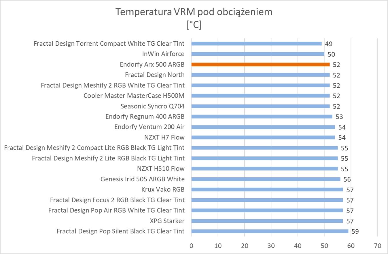 Wyniki są bez wątpienia bardzo dobre. Obudowa zapewnia niskie temperatury wszystkich testowanych części i znajduje się w czołówce wszystkich obudów. Bez wątpienia możecie więc montować w niej najwydajniejszy sprzęt i spokojnie liczyć na dobre jego chłodzenie.