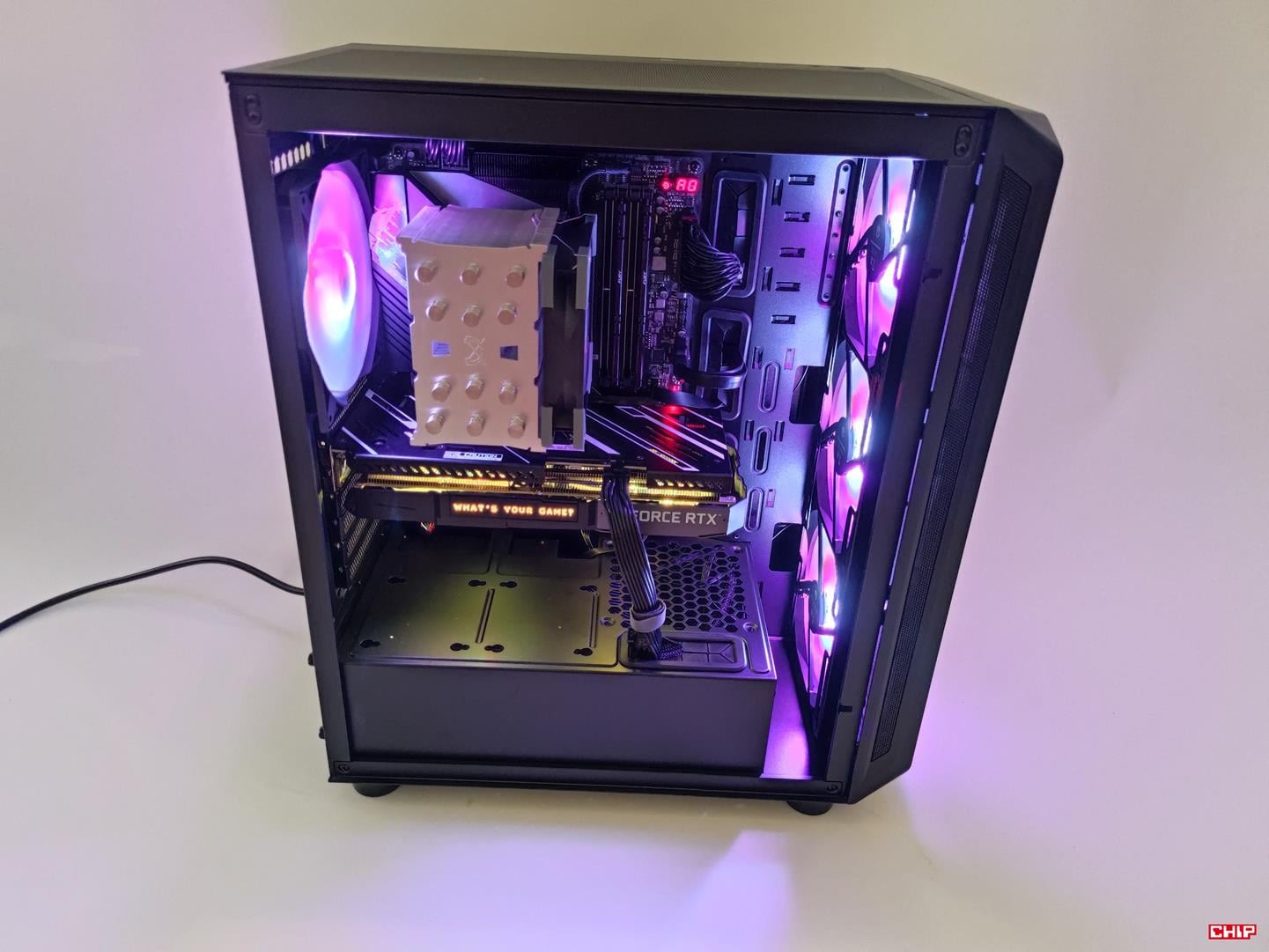 Obudowa ma filtry przeciwkurzowe, które łatwo można wyjąć i wyczyścić. Montaż podzespołów jest naprawdę prosty i bezproblemowy. Plusem jest kontroler, do którego podłączycie do 5 urządzeń 4-pin oraz ARGB. Podświetleniem możecie sterować przez przycisk na obudowie albo oprogramowanie płyty głównej. System zarządzania okablowaniem jest naprawdę fajny i bez problemów ładnie wszystko ułożycie.