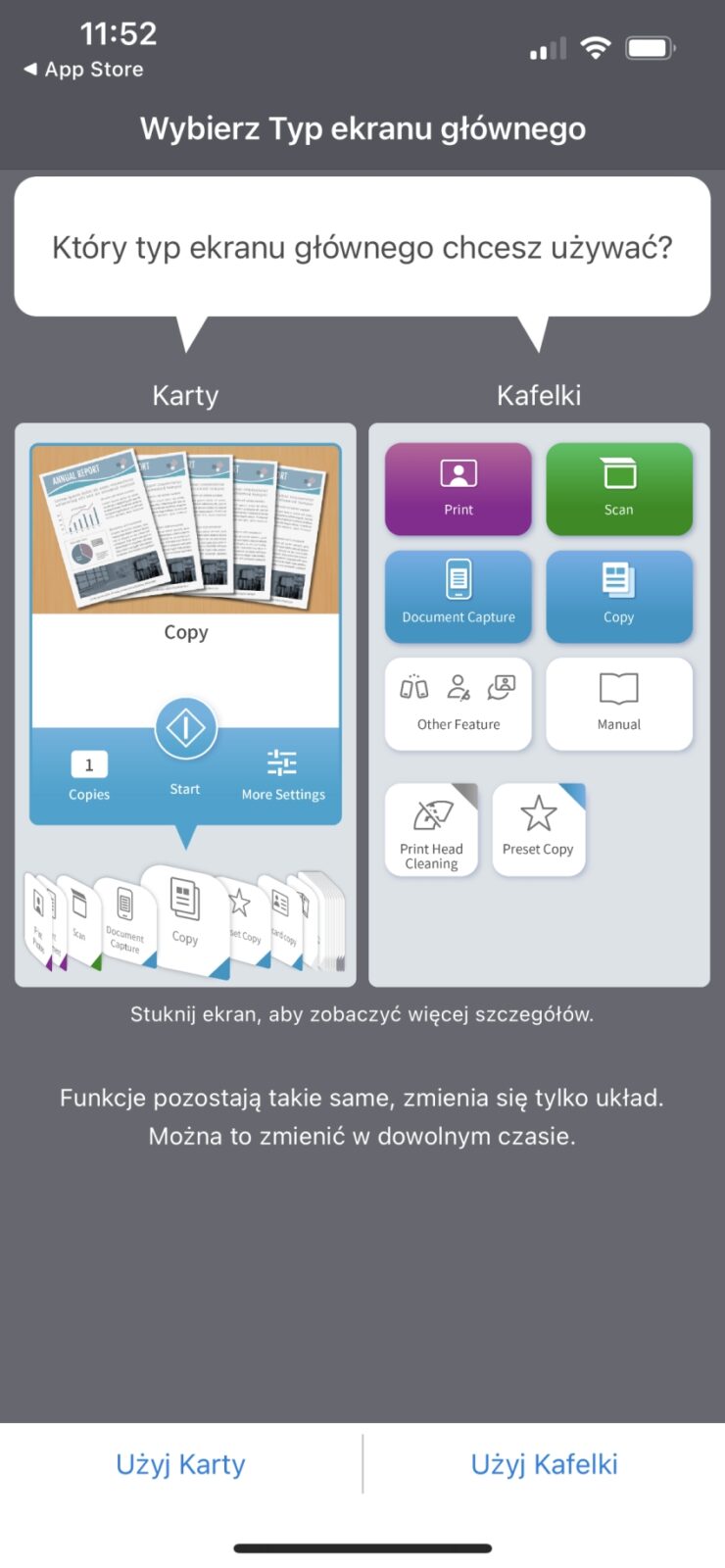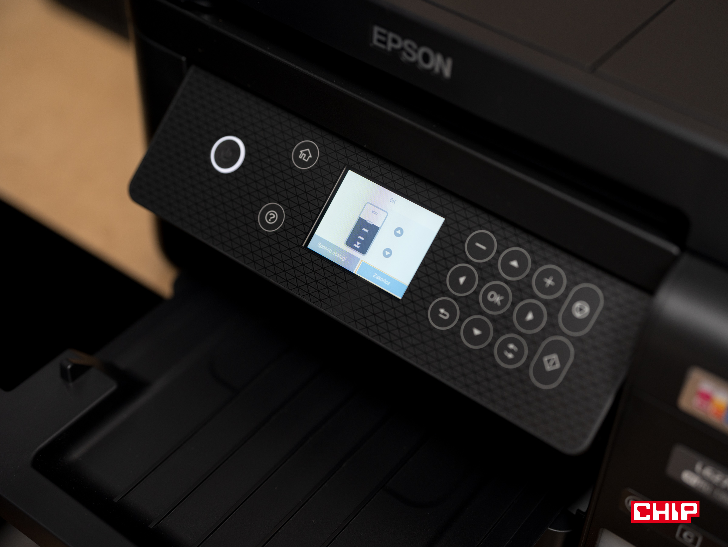 Jeśli jednak chcemy obsłużyć drukarkę bez podłączania jej do telefonu czy nawet bez podchodzenia do komputera, oczywiście jest taka możliwość. Funkcjami urządzenia możemy zarządzać z poziomu kolorowego wyświetlacza LCD o przekątnej 6,1 cm. Szkoda, że nie jest to wyświetlacz dotykowy, ale obsługa przyciskami nie nastręcza żadnego problemu.
