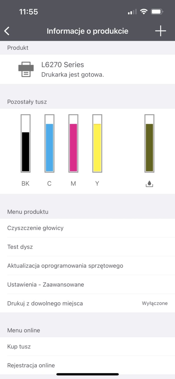 Oczywiście jak na drukarkę w 2023 r. przystało, Epson EcoTank L6270 możemy obsłużyć z poziomu przejrzystej aplikacji Epson Smart Panel. Pozwala nam ona nie tylko zarządzać funkcjami drukarki, ale też podejrzeć jej zużycie, a nawet kupić tusz bezpośrednio u producenta.