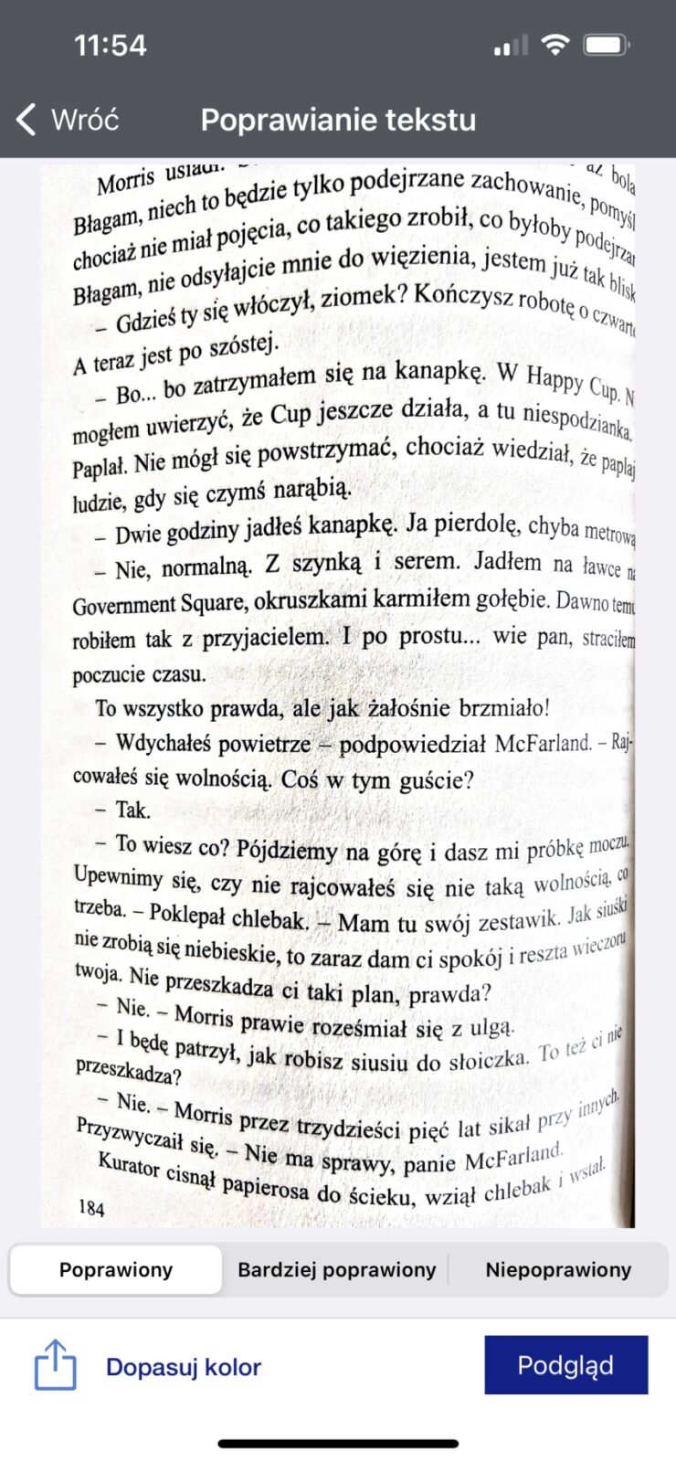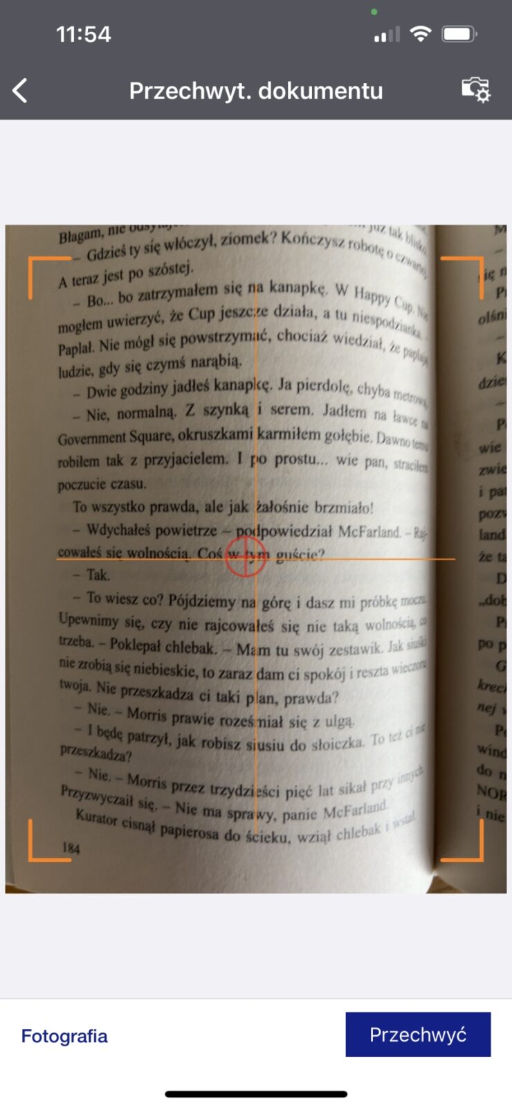Bardzo przydatna jest też zintegrowana funkcja skanera, wykorzystująca aparat w telefonie. Czasem tak jest szybciej i prościej, niż kładąc książki czy dokument na fizycznym skanerze urządzenia.