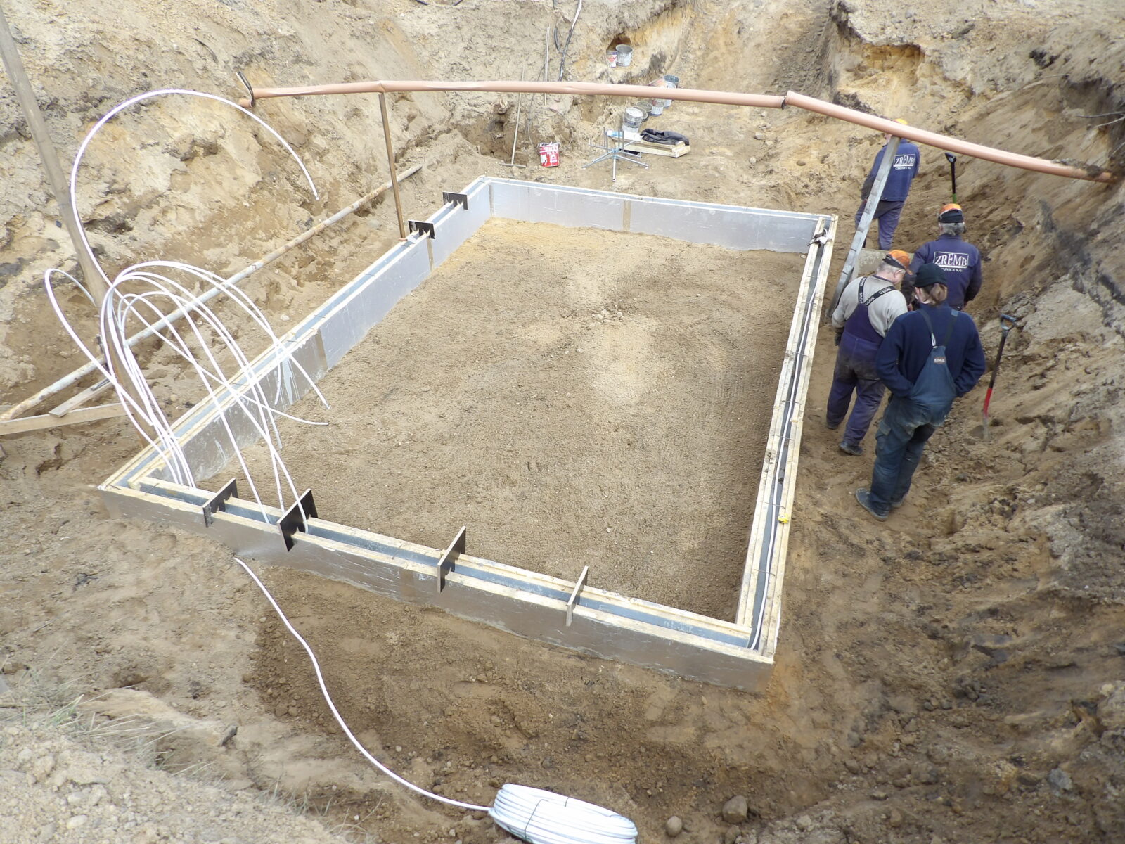 Jak powstał magazyn energii cieplnej? W wykopanym dole w ziemi zamontowano betonowe ściany i podłogę. Następnie powstałą przestrzeń ponownie zasypano tą samą ziemią. Ciepło jest generowane właśnie w glebie. Warto przypomnieć, że magazyny na energię cieplną kumulują nadwyżki wygenerowane przez kolektory w trakcie słonecznej pogody. Tutaj ten naddatek się przechowywany w glebie z pętlami grzewczymi ze stali nierdzewnej, co pozwala na efektywną wymianę ciepła – tłumaczy nam prezes Zremb Chojnice, Krzysztof Kosiorek-Sobolewski.
