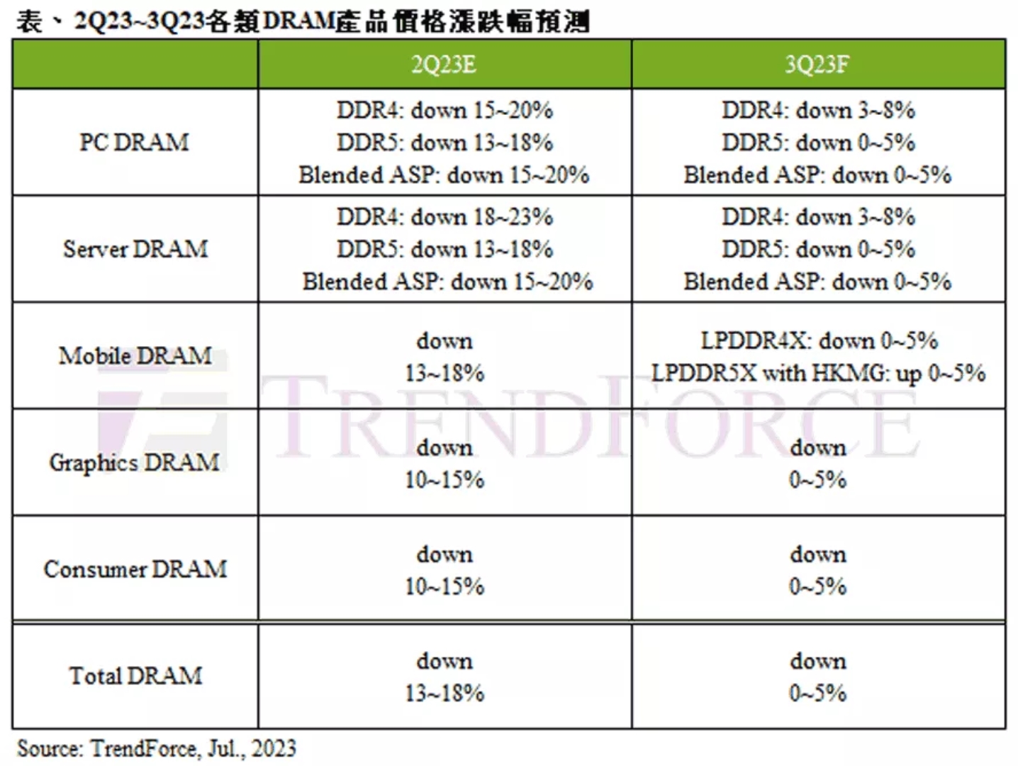 Jak jednak będzie wyglądać kwestia cen DDR4 i DDR5 w następnych miesiącach? Ostatnie lata przyzwyczaiły nas do znaczących obniżek i to rzędu nawet kilkudziesięciu procent na przestrzeni kwartałów, ale dobre czasy już się skończyły. Jak wspomina raport TrendForce, znaczne spadki cen pamięci RAM to już przeszłość, bo wedle danych i szacunków analityków, w bieżącym kwartale ceny pamięci DRAM spadną jedynie o od zera do pięciu procent, a nie o 13-18%, jak w zeszłym kwartale. Warto podkreślić, że tyczy się to całego segmentu DRAM, a w tym działu mobilnego, konsumenckiego oraz serwerowego.
