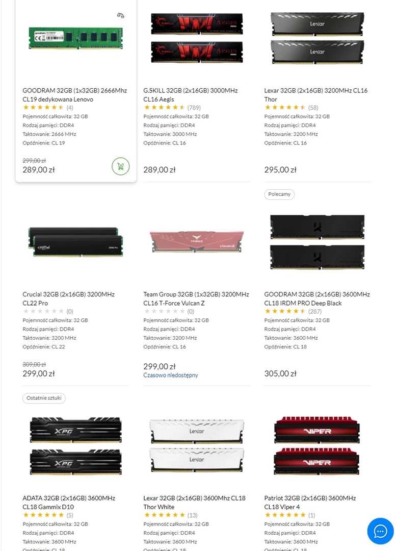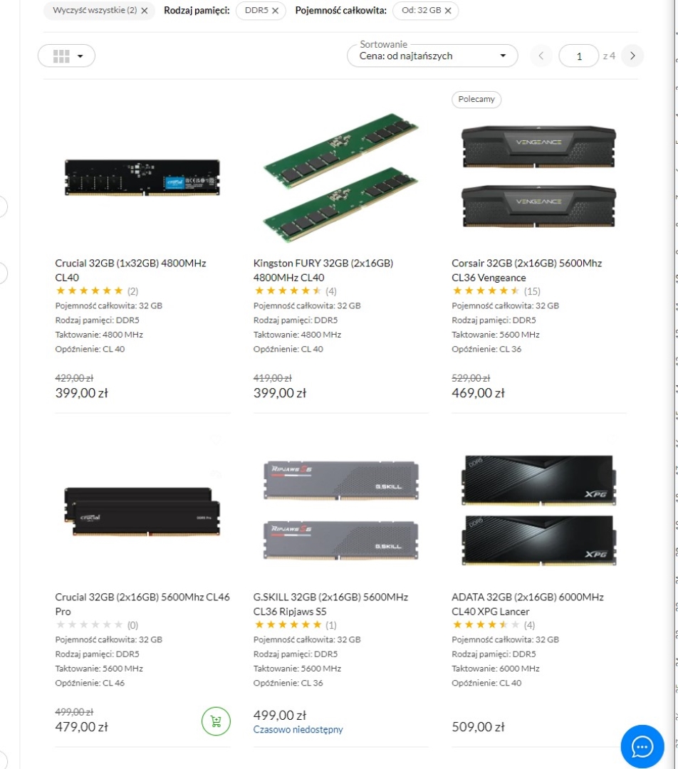 Zgodnie z oczekiwaniem, mimo rynkowego debiutu nowego standardu pamięci w 2021 roku, starszy rodzaj pamięci, czyli DDR4, nie odszedł do lamusa. Dziesiątki milionów zestawów komputerowych nadal wykorzystuje ten wieloletni udany standard pamięci i zapewne nie zmieni się to przez najbliższe kilka lat, a nawet dekadę, dzięki czemu niska cena DDR4 nadal będzie się utrzymywać. Trudno bowiem narzekać na aktualnie dostępne zestawy 2×8 GB w cenie 149 złotych i 2×16 GB w cenie około 300 zł, bo to poziomy, o których jeszcze przed kilkoma laty mogliśmy tylko marzyć, a dziś możemy zapewnić swojemu PC-towi całe 64 GB pamięci za mniej, niż 1000 złotych. Podobnie sprawa ma się w kwestii pamięci SODIMM, której zestawy 2×16 GB można dorwać już za 330 złotych.