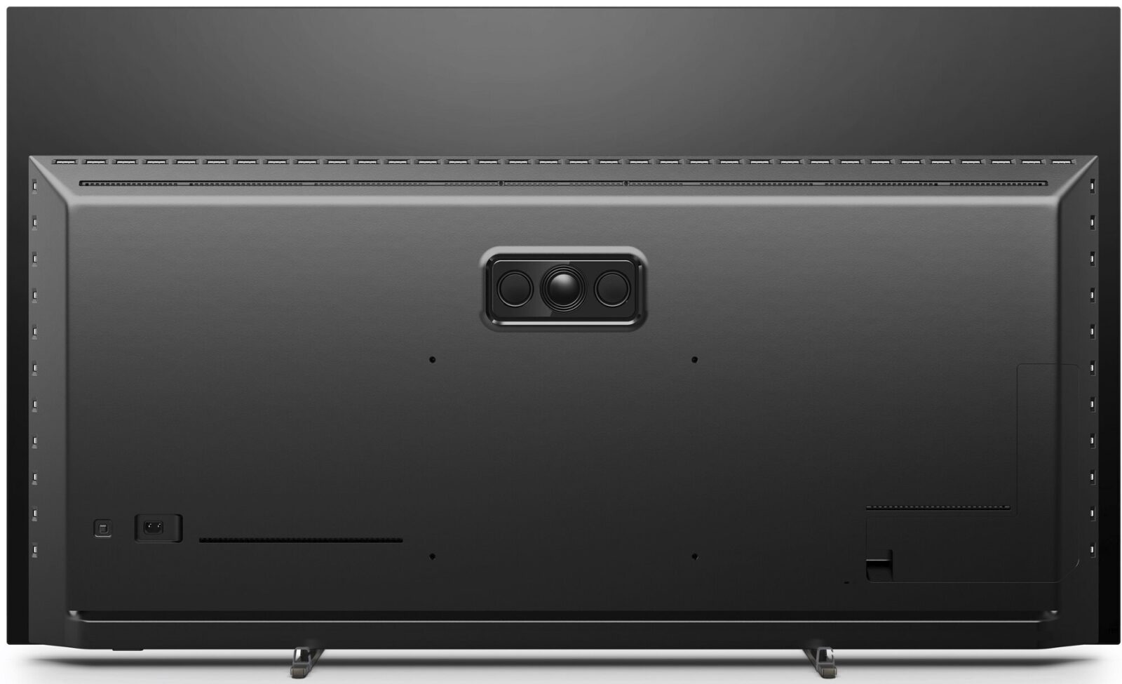 Philips OLED818 może pochwalić się niespotykanie wysoką mocą wbudowanych głośników. To aż 70 W w systemie 2.1 (40 W w modelu 42-calowym). Za tony niskie odpowiada trójpierścieniowy przetwornik w tylnej części obudowy, a do tego mamy cztery pasywne radiatory.