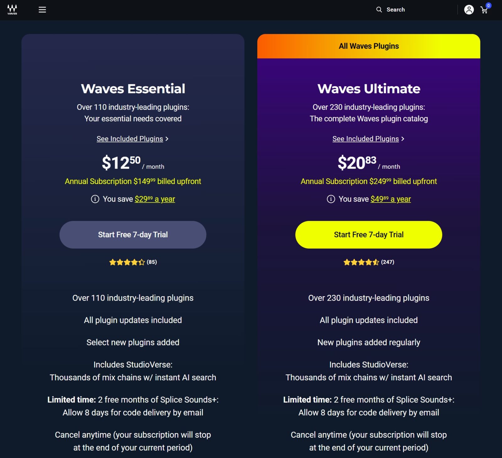Przewińmy do przodu o kilka miesięcy i już pojawiają się głosy, że ta subskrypcja Waves wcale nie jest taka zła. Dla kontekstu – jedna wtyczka kosztuje średnio 30-35 dol. (na promocji). Tymczasem abonamenty Waves Creative Access kosztują miesięcznie 12,50 dol. za dostęp do 110 wtyczek lub 20,83 dol.za dostęp do wszystkich 230 plug-inów portfolio firmy.