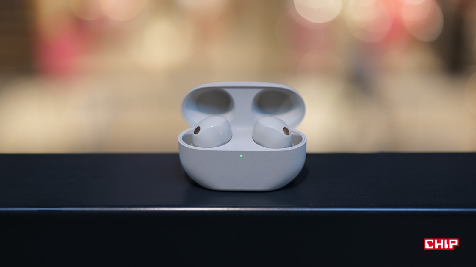 Być może ktoś w Sony odrobił lekcję z fidget spinnerów oraz innych zabawek, które mają angażować nasze dłonie i nadgarstki. Z pewnością te osoby spędziły też sporo czasu na zajęciach z ergonomii. Postęp w formie i wymiarach między kolejnymi generacjami jest ogromny. Etui nie jest za szerokie ani za długie i bez problemu wsuwa się je nawet do niewielkich kieszeni. Zaoblenia nadają mu smuklejszego wyglądu, a złote logo Sony (choć mam podejrzenia, że będzie się ścierać) zgrabnie domyka całość. Etui może stać na jednym z czterech boków. U dołu znajdziemy cewkę ładowania bezprzewodowego, zaś na tyle złącze USB-C oraz przycisk parowania. Z przodu w niewielkim otworze umieszczono wielokolorową diodę LED.