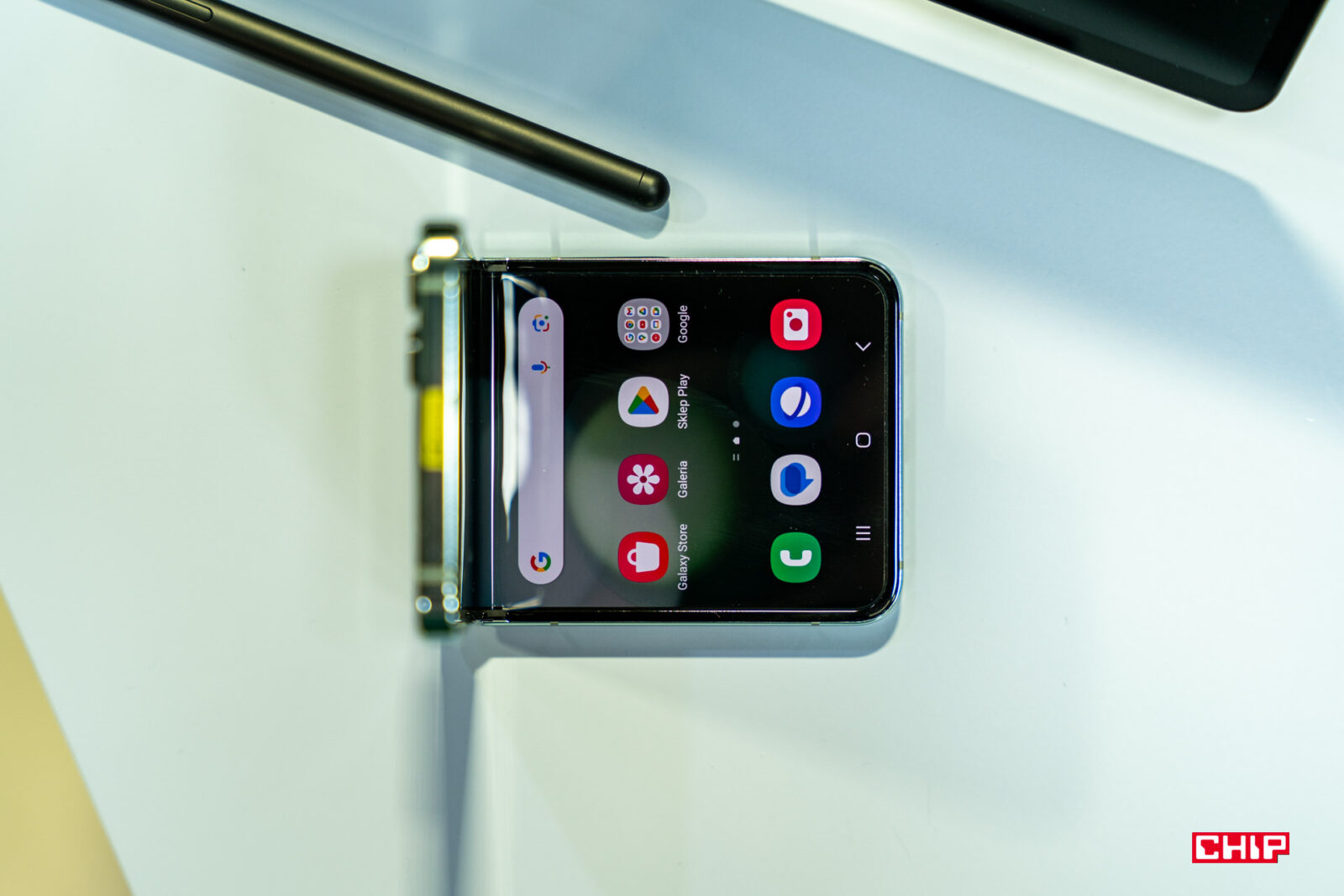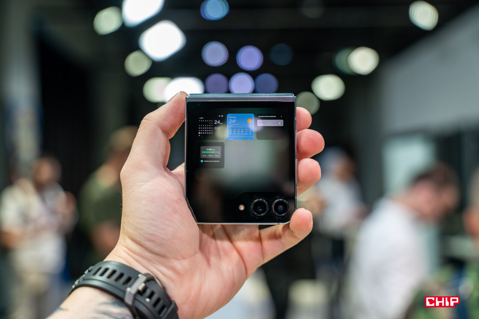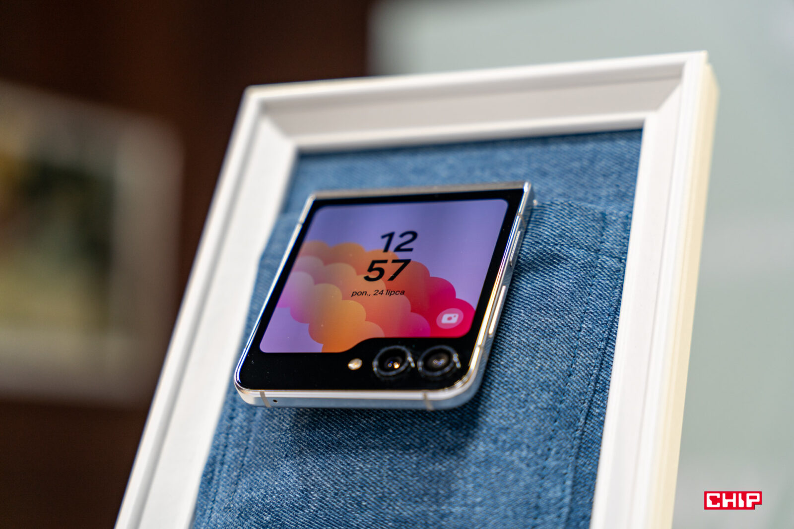 Nowego Flipa zdecydowanie nie pomylimy już z jego poprzednikami, co jest zasługą nowego ekranu zewnętrznego. Większy niż w Oppo Find N2 Flip, mniejszy niż w Motoroli Razr 40 Ultra, bo nie otacza aparatów, a w pewnym sensie je opływa.
