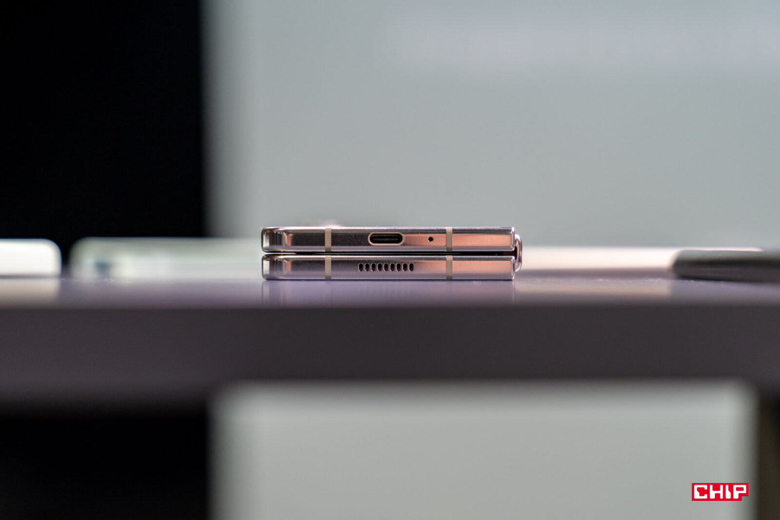 Konstrukcja Galaxy Z Folda 5, podobnie jak w piątym Flipie, jest wodoodporna zgodnie z normą IPX8, ma aluminiową ramkę (Armour Aluminum) oraz szkło Gorilla Glass Victus 2. Pozostając przy konstrukcji, Samsung zmienił etui z wbudowanym rysikiem. W Foldzie 4 rysik mocno wystawał ponad powierzchnię obudowy i ani to nie było ładne, ani zbyt funkcjonalne. Do nowego Folda przygotowano etui z rysikiem, który znacznie mniej zwiększa grubość konstrukcji. Podczas gdy poprzednie etui miało grubość 28,5 mm, tak nowe to już 20,63 mm. Tę różnicę faktycznie widać i jest to bardzo dobra zmiana.