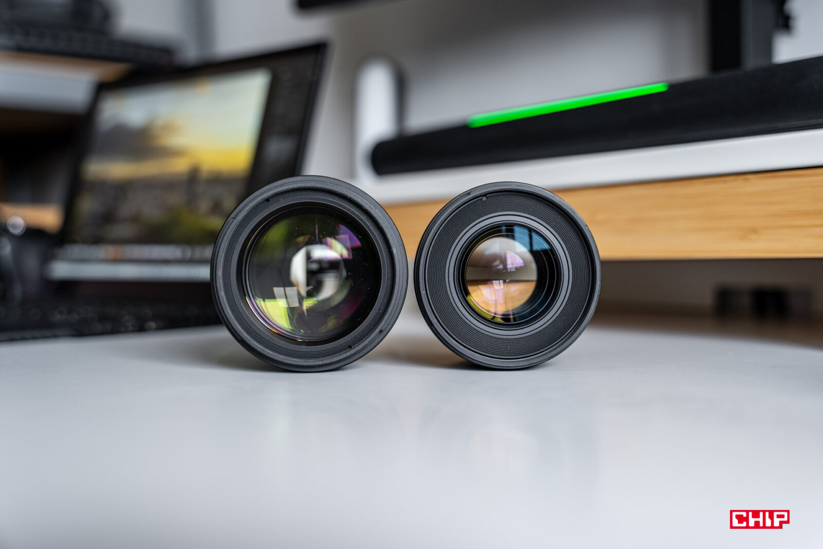 Na pierwszy rzut oka 85-ka nie różni się zbytnio od posiadanego przeze mnie wariantu 50 mm. Z całej trójki 35, 50 i 85 mm to właśnie ten ostatni ma największą średnicę (filtry 72 mm), a pod względem wysokości plasuje się pośrodku. Jest minimalnie wyższy niż 50 mm i niższy niż 35 mm.