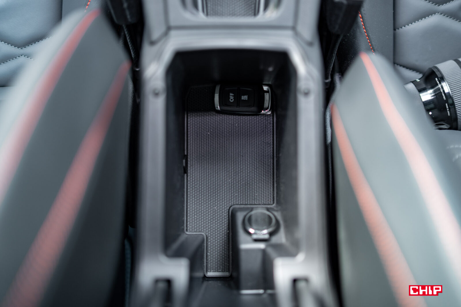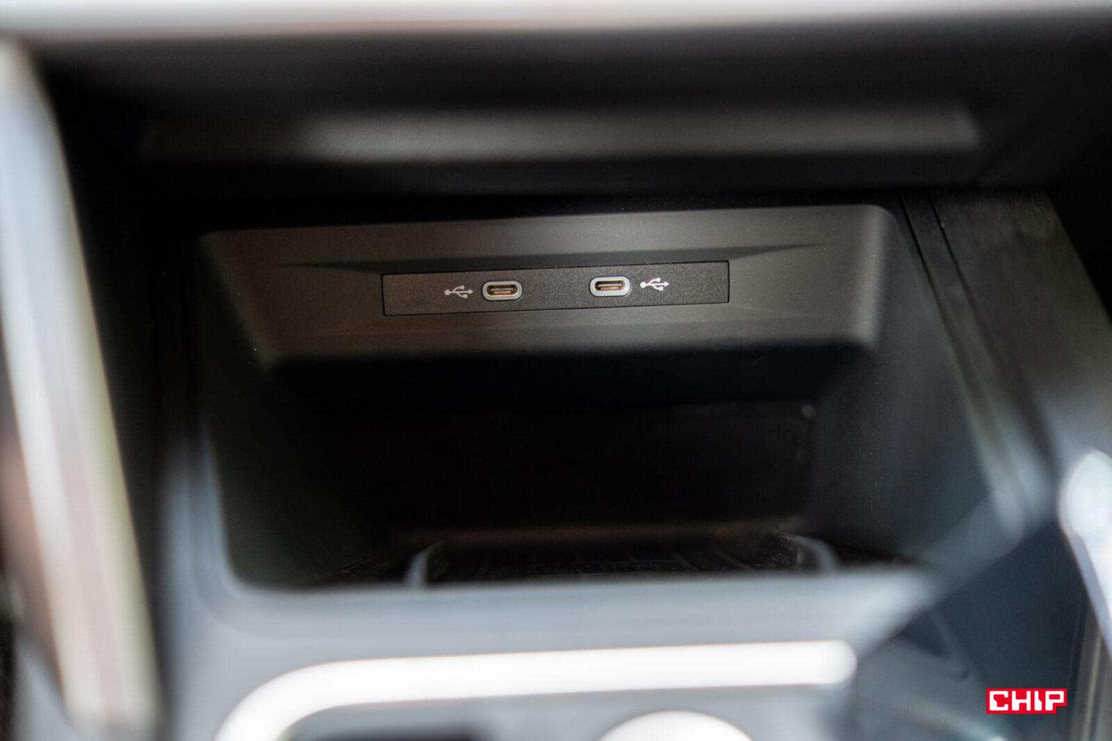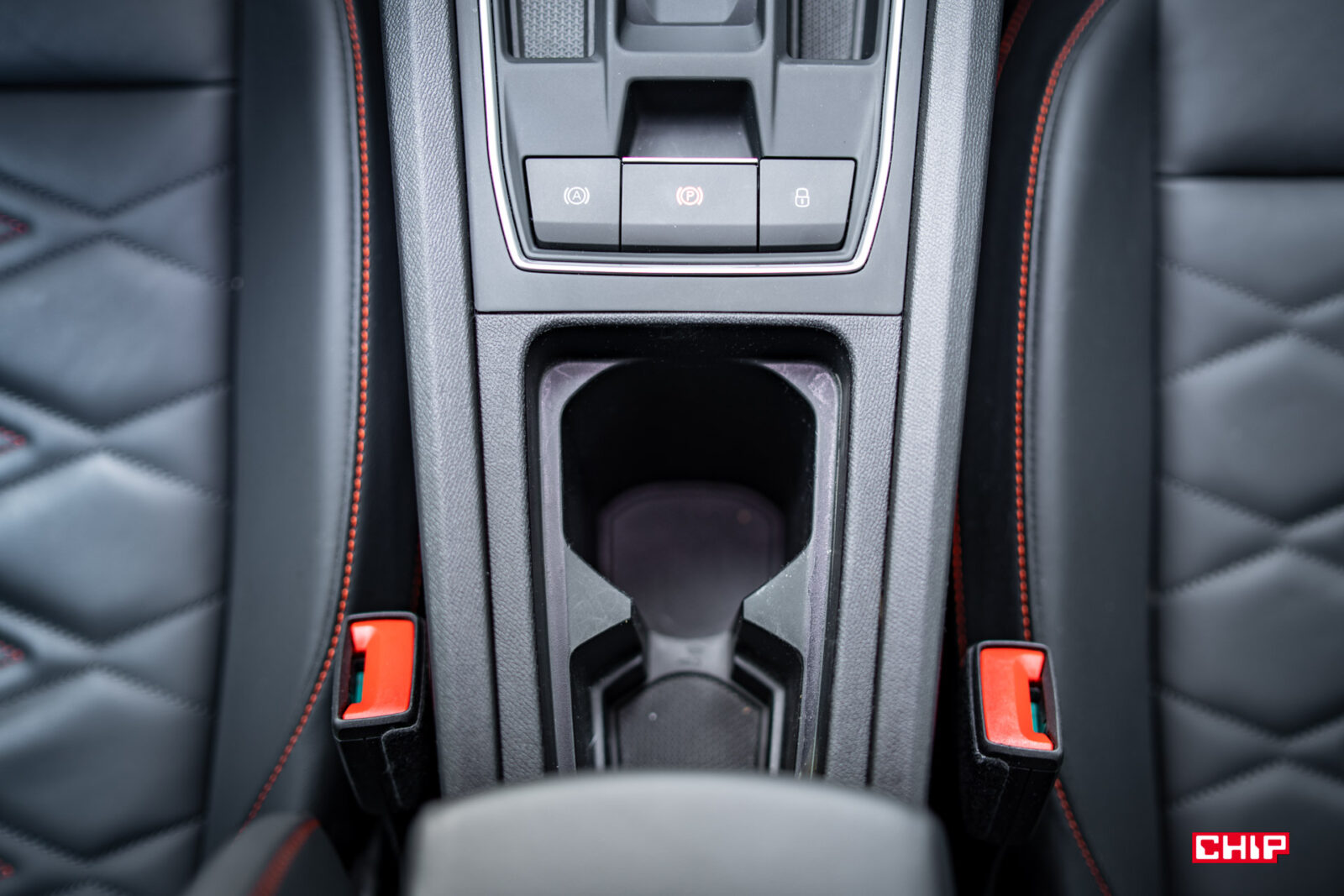 Z elementów praktycznych, mamy tu przesuwany podłokietnik ze sporym schowkiem pod nim (i gniazdem 12V), opcjonalnie dwa porty USB-C i ładowarkę indukcyjną z przodu oraz kolejne dwa porty USB-C z tyłu. Uchwyty na napoje są różnej wielkości, wiec do jednego możemy włożyć mniejszą puszkę, do drugiej większy kubek z kawą. Wedle gustu.