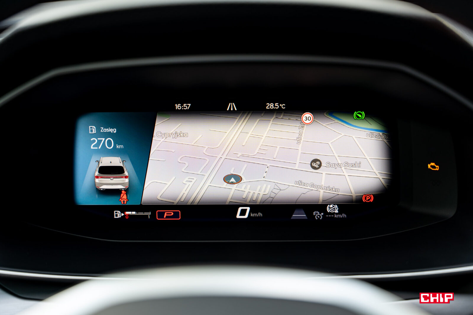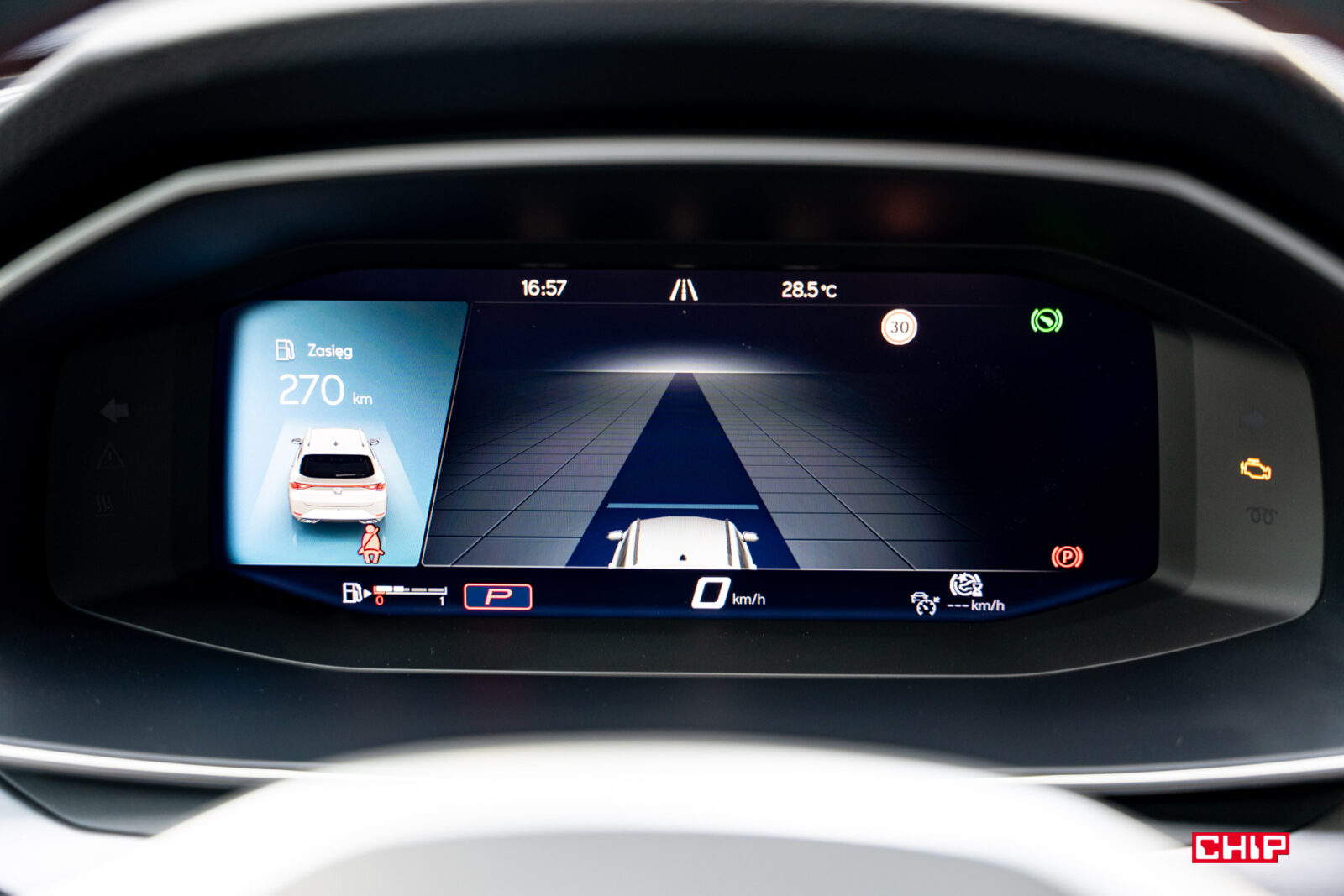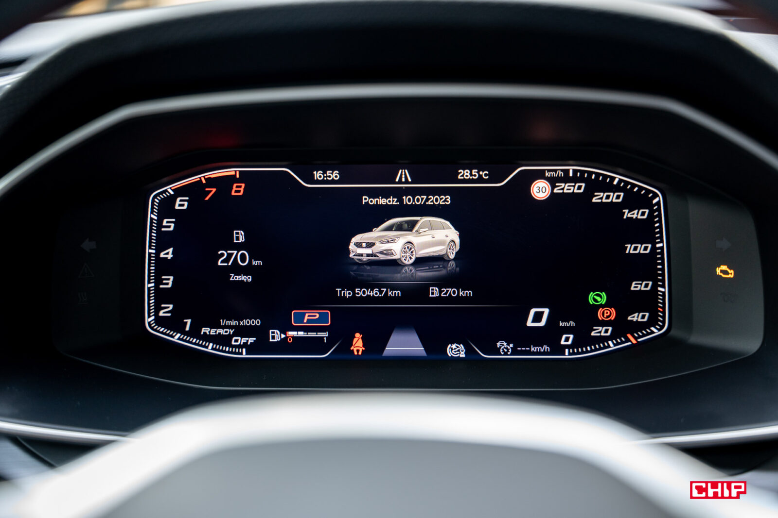 Zazwyczaj staramy się unikać wrzucania nieskończenie wielu zdjęć interfejsu, ale w przypadku Leona zrobimy wyjątek. Ekran kierowcy może być skonfigurowany na masę różnych sposobów. Można tu zrobić dosłownie choinkę przeróżnych wyświetlanych informacji, można dowolnie łączyć ze sobą elementy, wybrać widok nieco bardziej analogowy, całkowicie cyfrowy, a na deser dołożyć do tego mapę. Zobaczcie sami: