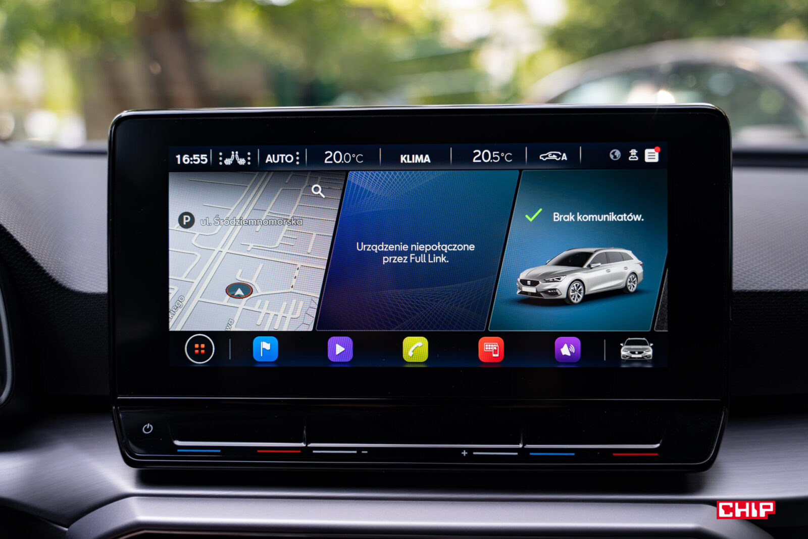 Macki Volkswagena dotknęły systemu multimedialnego Seata Leon Sportstourer i jest to w zasadzie jego najsłabszy element. Interfejs jest ładny, przejrzysty, kolorowy i bardzo przyjemnie się na niego patrzy, ale tego samego nie można powiedzieć o jego użytkowaniu. Jest niemiłosiernie wolny i reaguje na polecenia z dużym opóźnieniem. Najlepiej jest raz wprowadzić wszystkie ustawienia i o nim zapomnieć, a ekranu używać do Android Auto lub Apple CarPlay. Oba działają bezprzewodowo, za co ogromny plus oraz bez żadnych zastrzeżeń. Wielka szkoda, bo poprzednie generacje Seata wypadały pod tym względem o wiele lepiej. Interfejs działał szybciej, mieliśmy sporo wygodnych fizycznych przycisków. Niestety ewolucja poszła w złym kierunku.