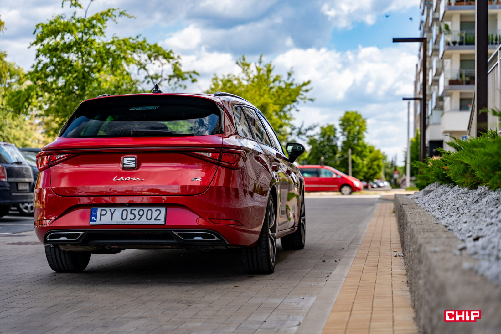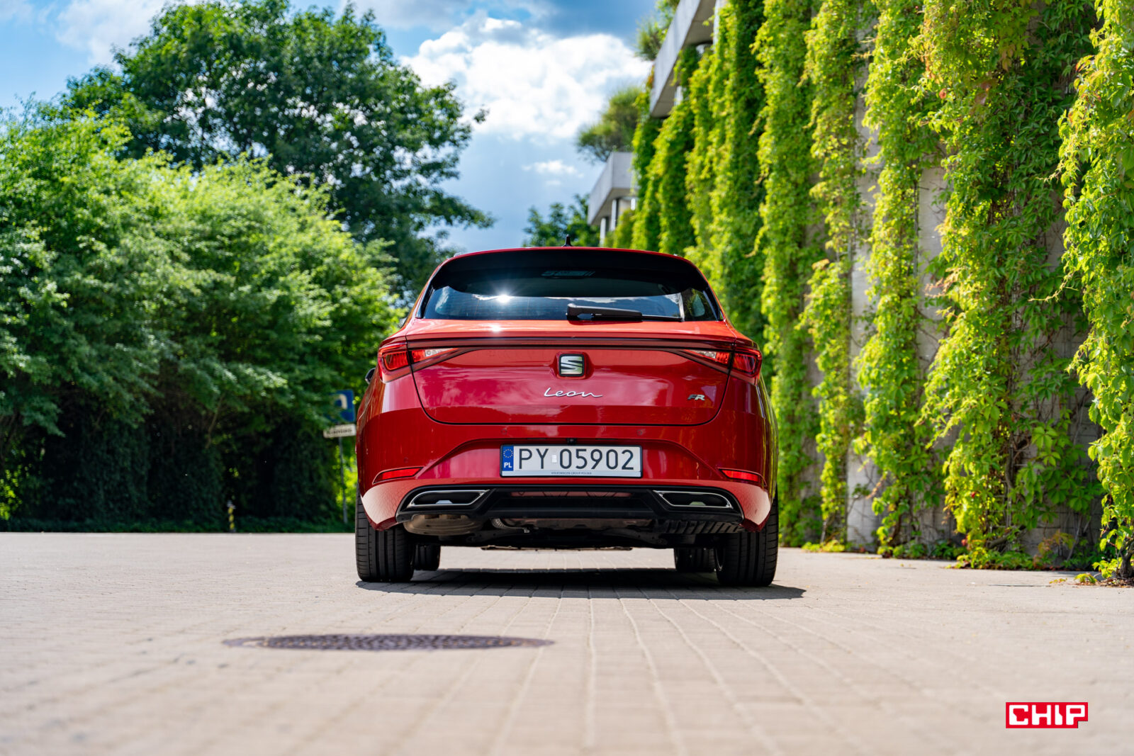Tył to chyba najbardziej dyskusyjny element Leona. Jakiś taki obły, z nazwą auta wypisaną dziwną czcionką, atrapami wydechu (wydech jest podwójny, po lewej stronie) i jakimiś takimi smutnymi światłami. Na wprost może szału nie robi, ale skutecznie nadrabia pod dowolnym skosem.