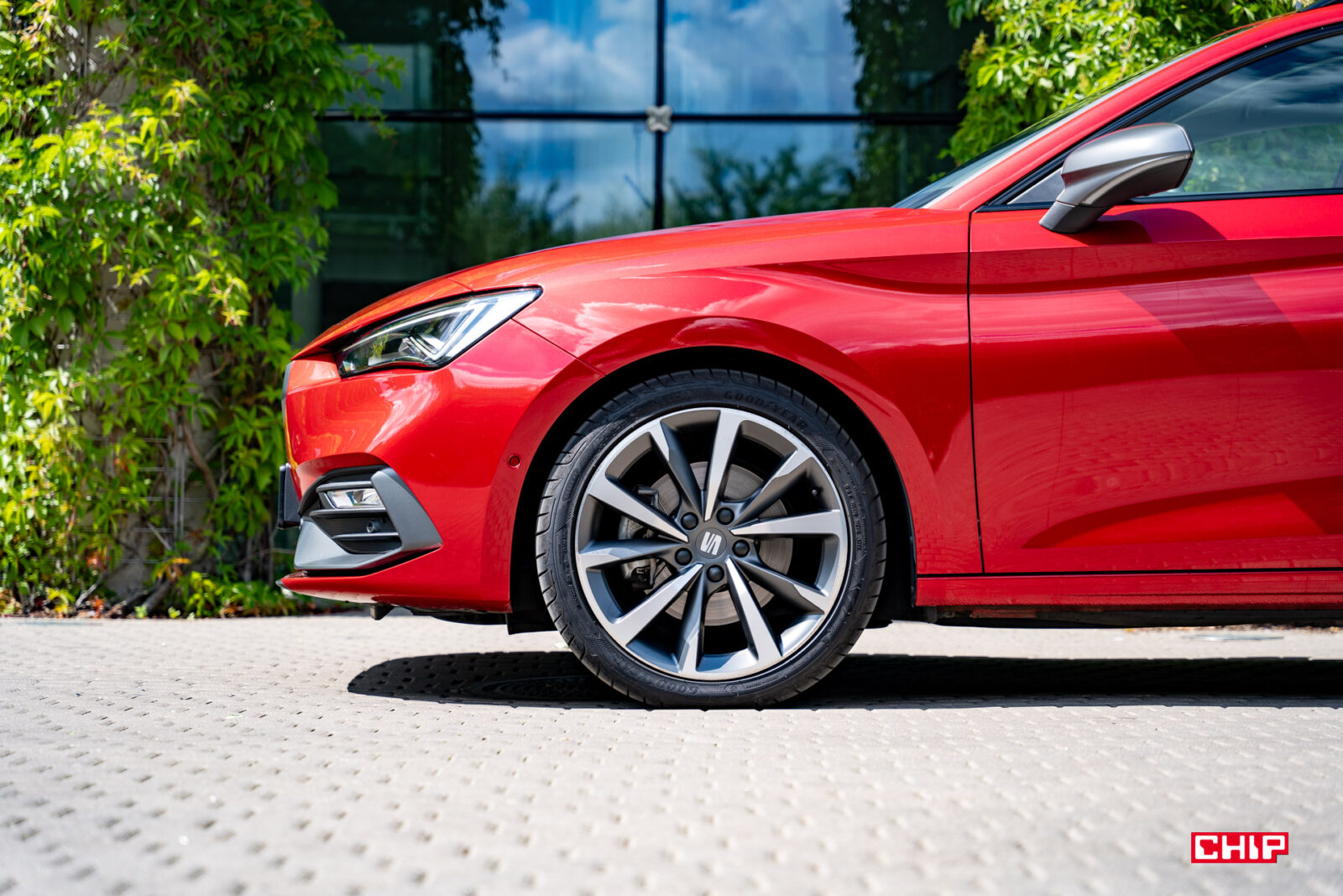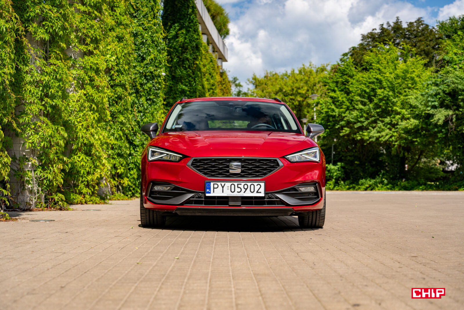 Z przodu auto jest nieco zadziorne, ale nieprzesadnie agresywne. Głównie za sprawą malutkiego, jak na dzisiejsze standardy, grilla. Za nim znajdują się aktywne wloty powietrza, tzn. kiedy chłodnica nie potrzebuje zasysać powietrza, jest zasłaniana przez aktywne żaluzje. Leon w kombi nie jest szerokim autem i z lusterkami ma szerokości 1991 mm.