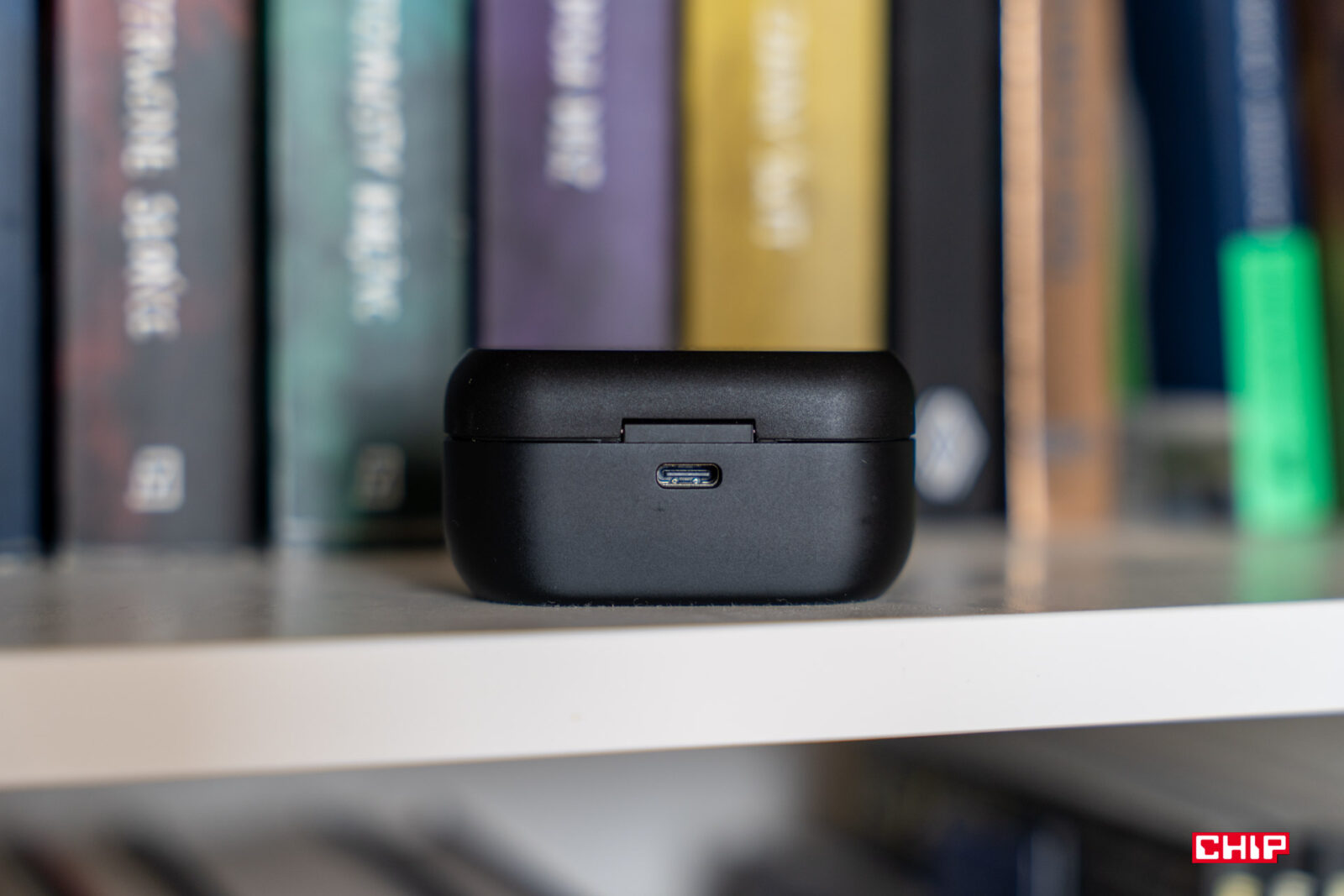 Etui ładujące pozwala na dwa pełne cykle ładowania z małym zapasem, co przekłada się na łącznie ok 20 godzin działania słuchawek. Sam cykl ładowania do pełna trwa ok 40 minut, a etui naładujemy do pełna w nieco ponad 70 minut. Można je ładować przez port USB-C lub bezprzewodowo w standardzie Qi.