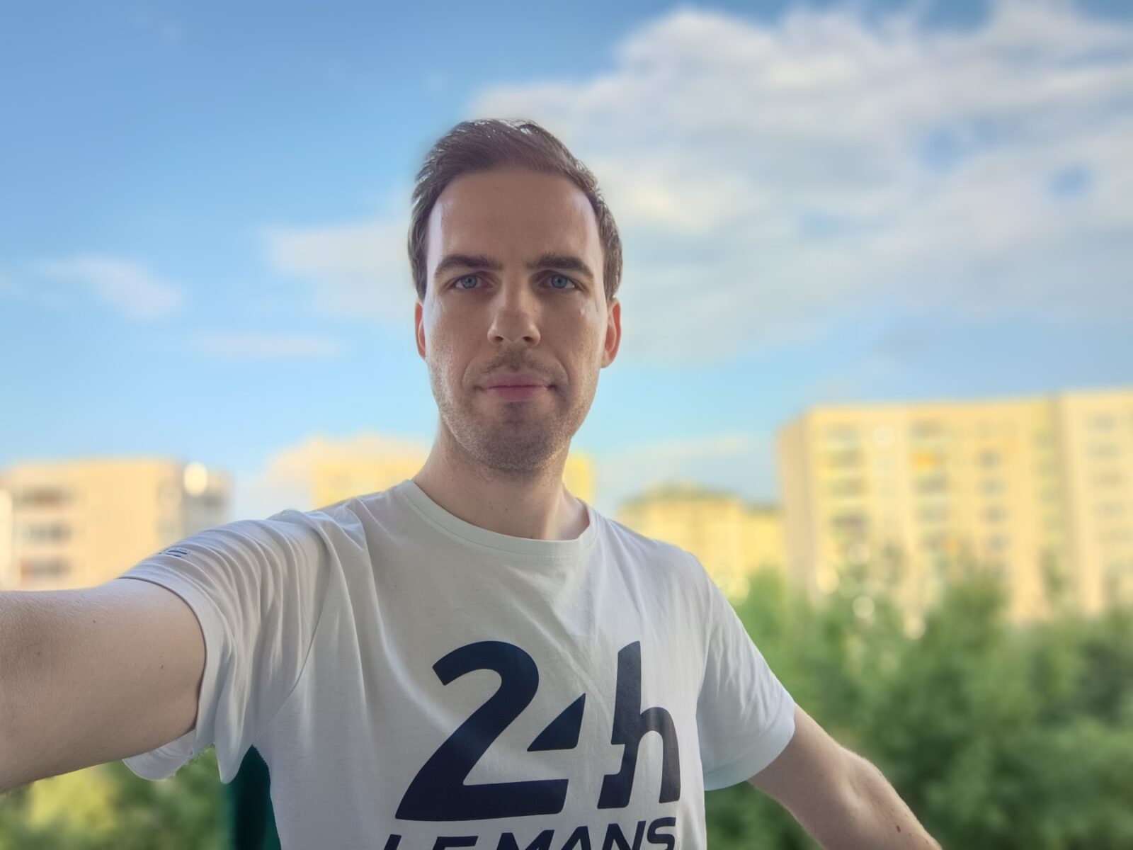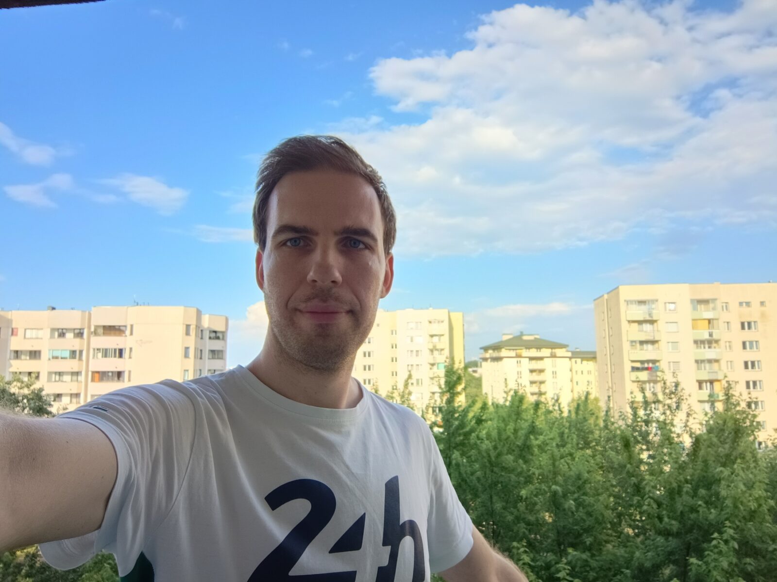 Aparat do zdjęć selfie posiada 32 Mpix matrycę z optyką o jasności f/2.4. Tu z kolei nie ma większego problemu z barwami, ale zdjęcia czasami wychodzą zbyt jasne w automacie. Szczegółowość „samopstryków” również mogłaby być nieco większa. Na plus należy zaliczyć za to możliwość doświetlenia kadru ekranem podczas wykonywania zdjęć nocnych oraz możliwość regulacji efektu rozmycia w trybie portretowym.