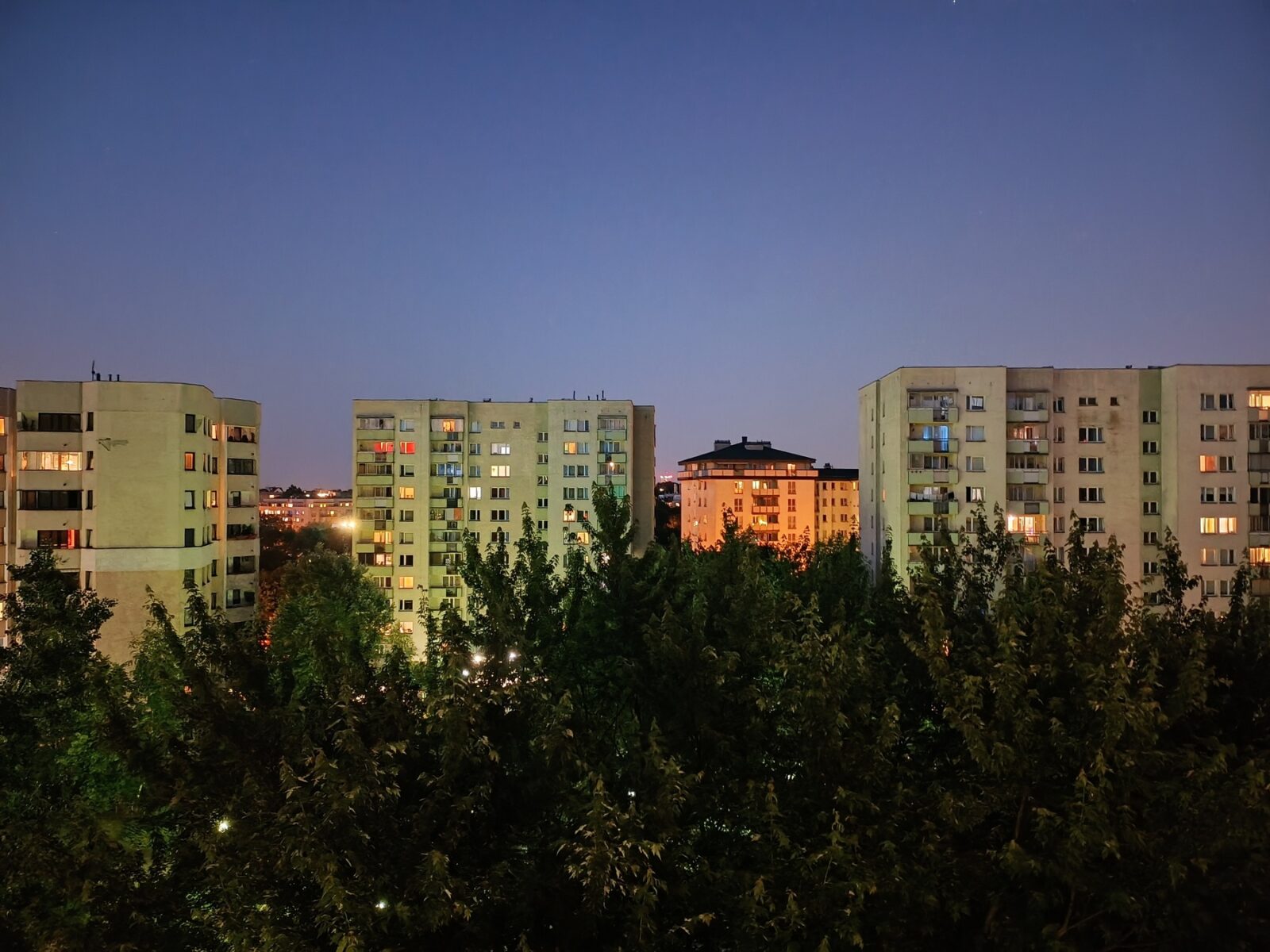 Po zmroku oczywiście wzrasta ilość szumów, a szczegółowość spada, ale ogólnie jest nieźle. Z małą uwagą – jeśli chcemy zachować akceptowalną jakość zdjęć, musimy korzystać tylko a aparatu podstawowego i niestety „zapomnieć” o szerokim kącie. Czemu? Zdjęcia wykonane bez trybu nocnego wychodzą z niego zbyt ciemne, natomiast po włączeniu tego trybu pojawia się dziwne, absolutnie nienaturalne niebieskie przebarwienie na większości kadru. W mojej ocenie, to nieakceptowalne.