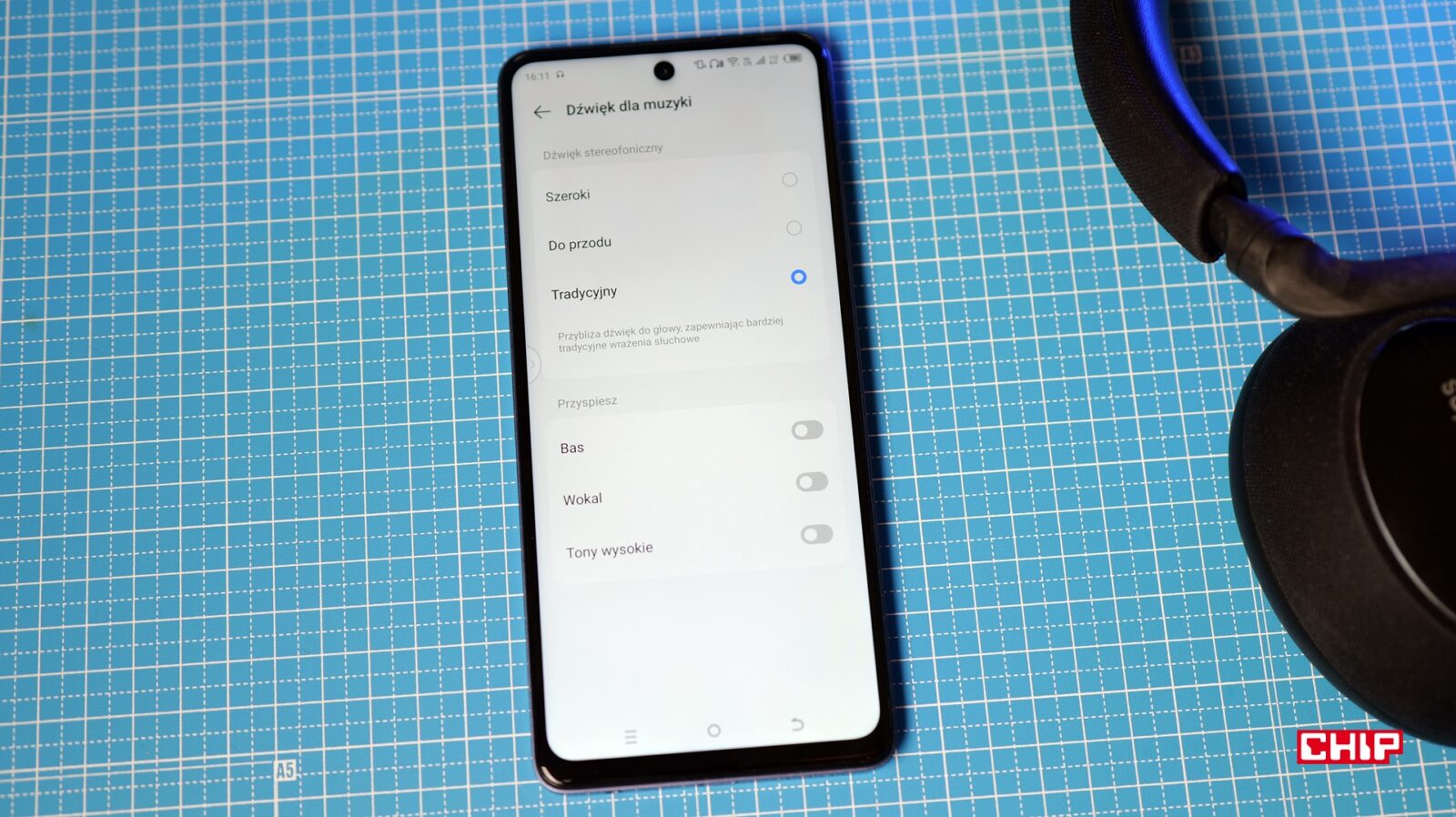 Ten ostatni aspekt szczególnie mnie zastanawia. Podczas testów smartfonów nigdy nie miałem do czynienia z głośnikiem tak cichym, z takim brakiem mocy. Nie był wystarczający, żebym mógł słuchać podcastów przy szumiącej wodzie podczas mycia naczyń. Było też na tyle cicho, że telefon musiałem mieć przy sobie, zamiast zostawić go w drugim pomieszczeniu, co z reguły nie jest konieczne. Co nieco w tej materii zmieniają ustawienia dźwięku DTS (zawsze włączone) i korektor. Po włączeniu tego drugiego dźwięk staje się odczuwalnie głośniejszy, ale wtedy dochodzi dopiero do akceptowalnego stanu. W dalszym ciągu nie ma tu zbyt dużo przestrzeni w niskich i wysokich tonach.